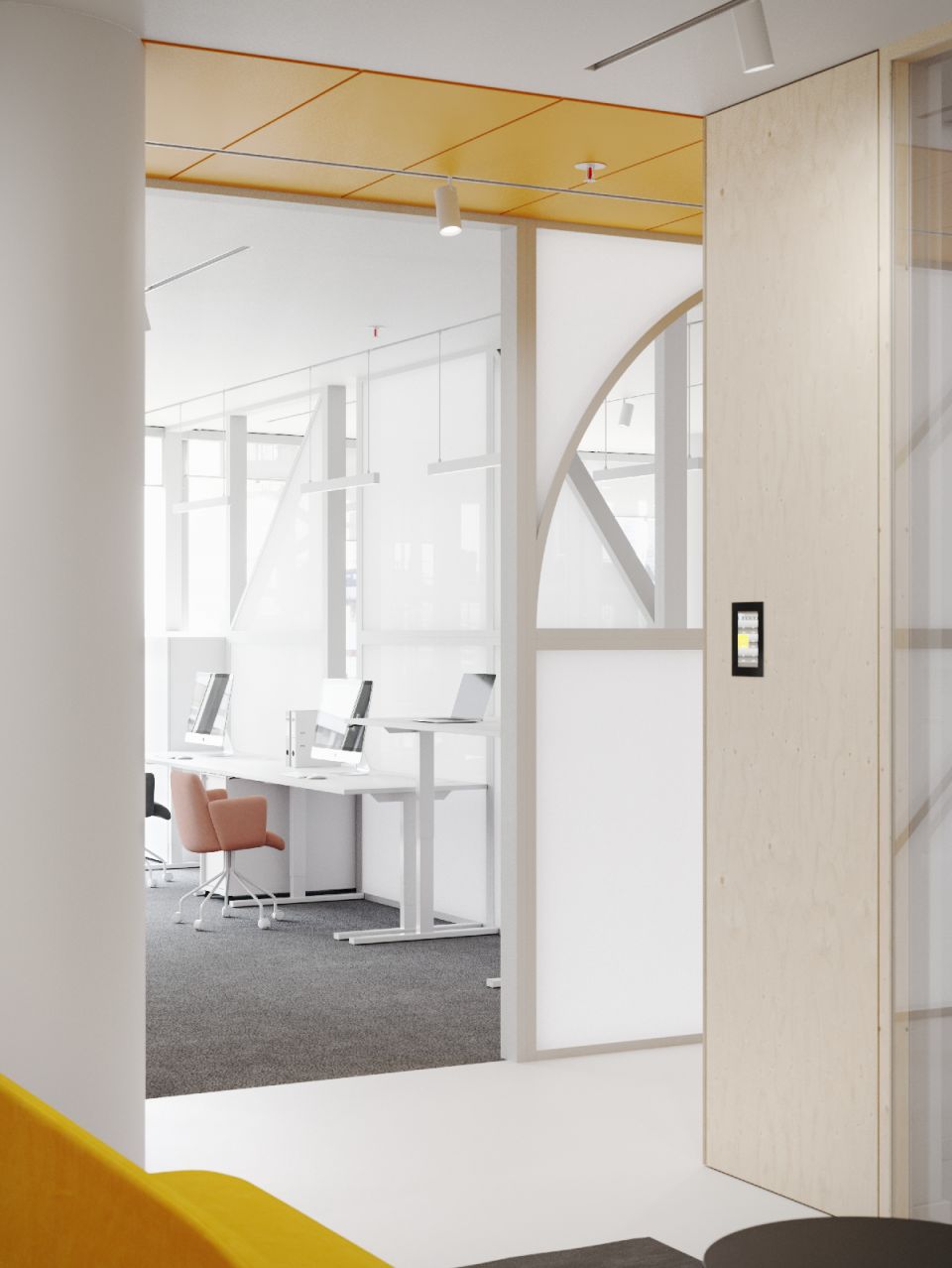 JUNG VILNIUS. Inovatyvi biuro apšvietimo sistema, lengvai ir patogiai valdoma JUNG KNX dėl jutiklinių jungiklių.