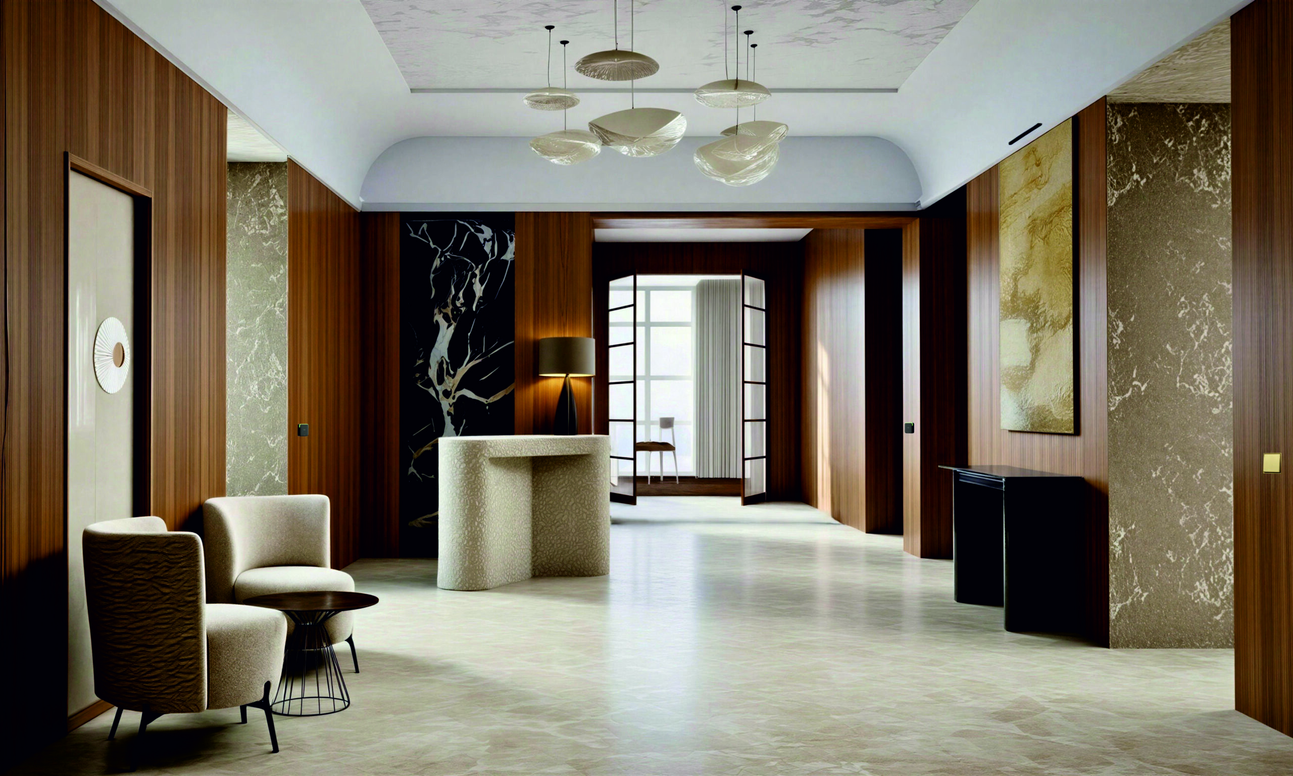 RB SOLUTIONS. Viešbučio holo laukiamojoje zonoje pasirinktas kompaktiškas ir lengvai perkeliamas kelių putplasčio sluoksnių fotelis „Bolero“ ir apskritas kavos staliukas „Renee“ (LE COMFORT). Miegamajame – fotelis „Shelley“ su fiksuotu arba sukamu pagrindu, dekoratyvinėmis pagalvėlėmis ant atlošo ir pritaikomomis kojelėmis. Lova „Sommier“ (LE COMFORT) – minimalistinė, be galvūgalio ar kojūgalio. Svečių kambaryje galima atsipalaiduoti ir pailsėti fotelyje „Rapanui“ (MISSANA), kurio kūrėjus įkvėpė paslaptingosios Velykų salos skulptūros Moai. Sofos „Rapanui“ sistemą sudaro trys moduliai, kurie gali būti naudojami atskirai, taip sukuriant begales galimybių. Viešbučio SPA dalyje pasirinkti gaminiai iš elegantiškos lauko baldų kolekcijos DNA (GANDIA BLASCO), įkvėptos subtilaus šviesos ir šešėlio žaismo tradicinėse Viduržemio jūros regiono langinėse, taip pat šešėlio šlovinimo japonų estetikoje. Valgomajame pasirinktas stalas ALTERA T0415, vonios kambaryje – pufas „Enora“, abu iš MOBITEC.