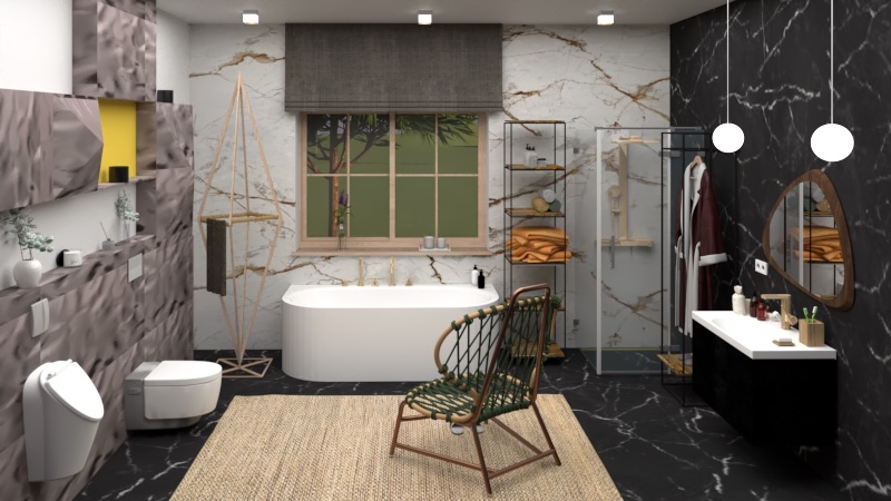 GEBERIT. Projekte naudojamas „Geberit AquaClean Mera Comfort“ WC su bide funkcija, pisuaras „Selnova S“ su dangčiu ir elektroniniu nuleidimu, užtikrinantis komfortą ir švarą. Dušo latako grotelės „CleanLine“, praustuvas „Acanto“ ir „One“ spintelė lavos spalvos kuria harmoningą vonios aplinką. Raudono aukso spalvos „Sigma 40“ vandens nuleidimo mygtukas subtiliai dera prie dekoratyvinės plokštės, įsiliedamas į bendrą estetinę visumą.