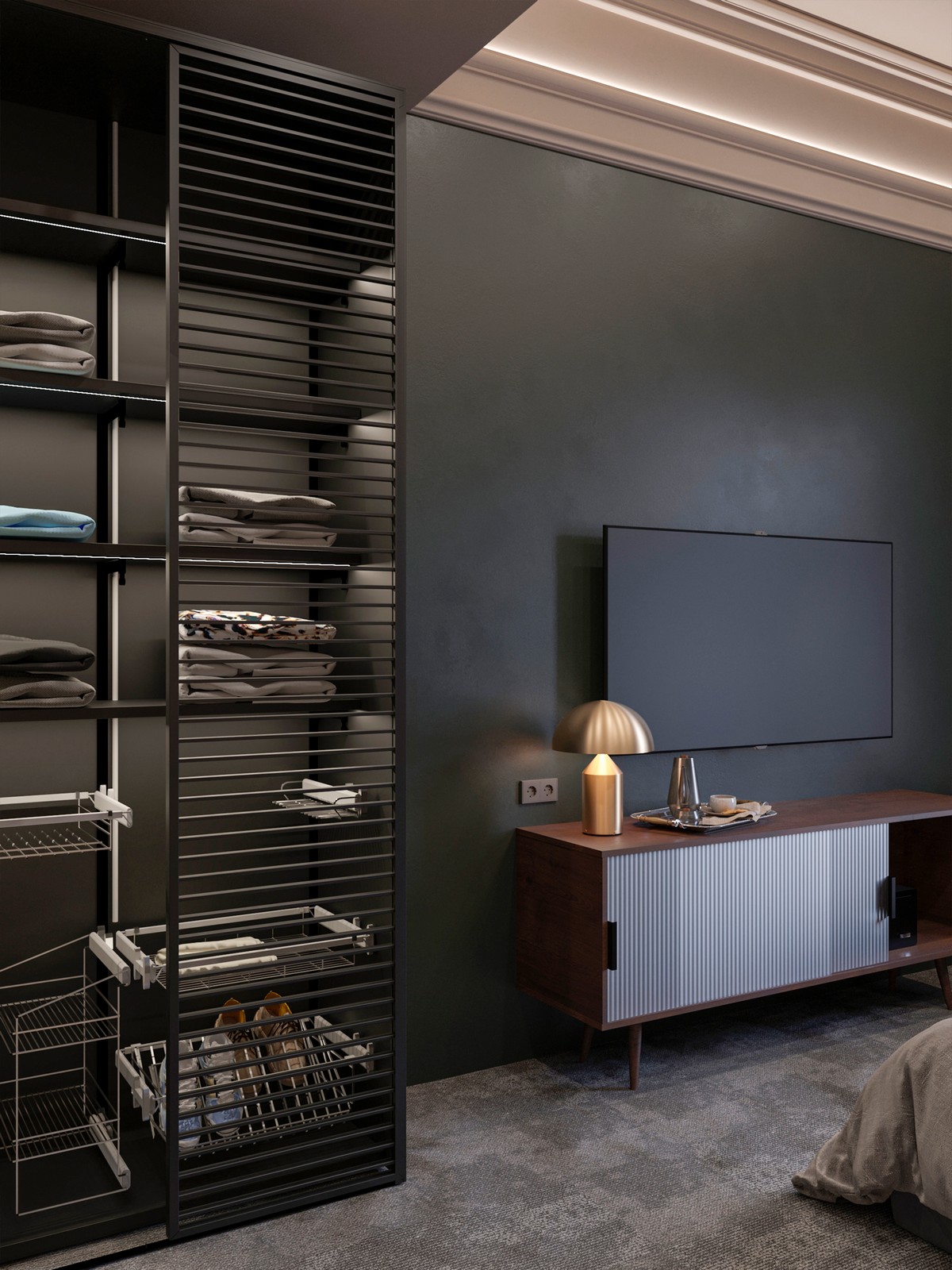 UAB BRASA. Viešbučio kambariuose naudojami spintų priedai „Smart“. Šios serijos kabyklos ir lentynos padeda palaikyti tvarką spintoje. Šiame projekte panaudotos šios serijos lentynos batams, kabykla diržams ir kaklaraiščiams, kabykla kelnėms, krepšiai ir stačiakampiai vamzdžiai.