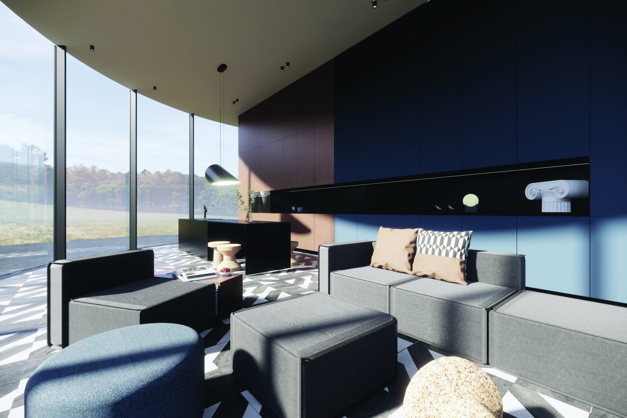 „Namas X“ – erdvė ateities žmogui. Toks žmogus yra drąsus ir turintis savo nuomonę, jam nėra ko slėpti, jis atviras aplinkai ir vertina komfortą, tačiau negali pakęsti daiktų pertekliaus. Ateities žmogus renkasi kokybę ir judesio laisvę. „Namas X“ iš karto patraukia dėmesį savo spalvine gama – kontrastuojančiomis spalvomis, simbolizuojančiomis ramybę ir aktyvumą. Namo perimetras įstiklintas – taip tarsi pranyksta riba tarp išorės ir vidaus, o vietose, kuriose norisi privatumo, įrengiamos transformuojamos specialaus popieriaus pertvaros. Žmogus gali keisti pertvarų vietą, todėl name atsiranda judančios ir takios erdvės. „Namas X“ – tai kontrastų erdvė, kurioje galima rasti balansą.
