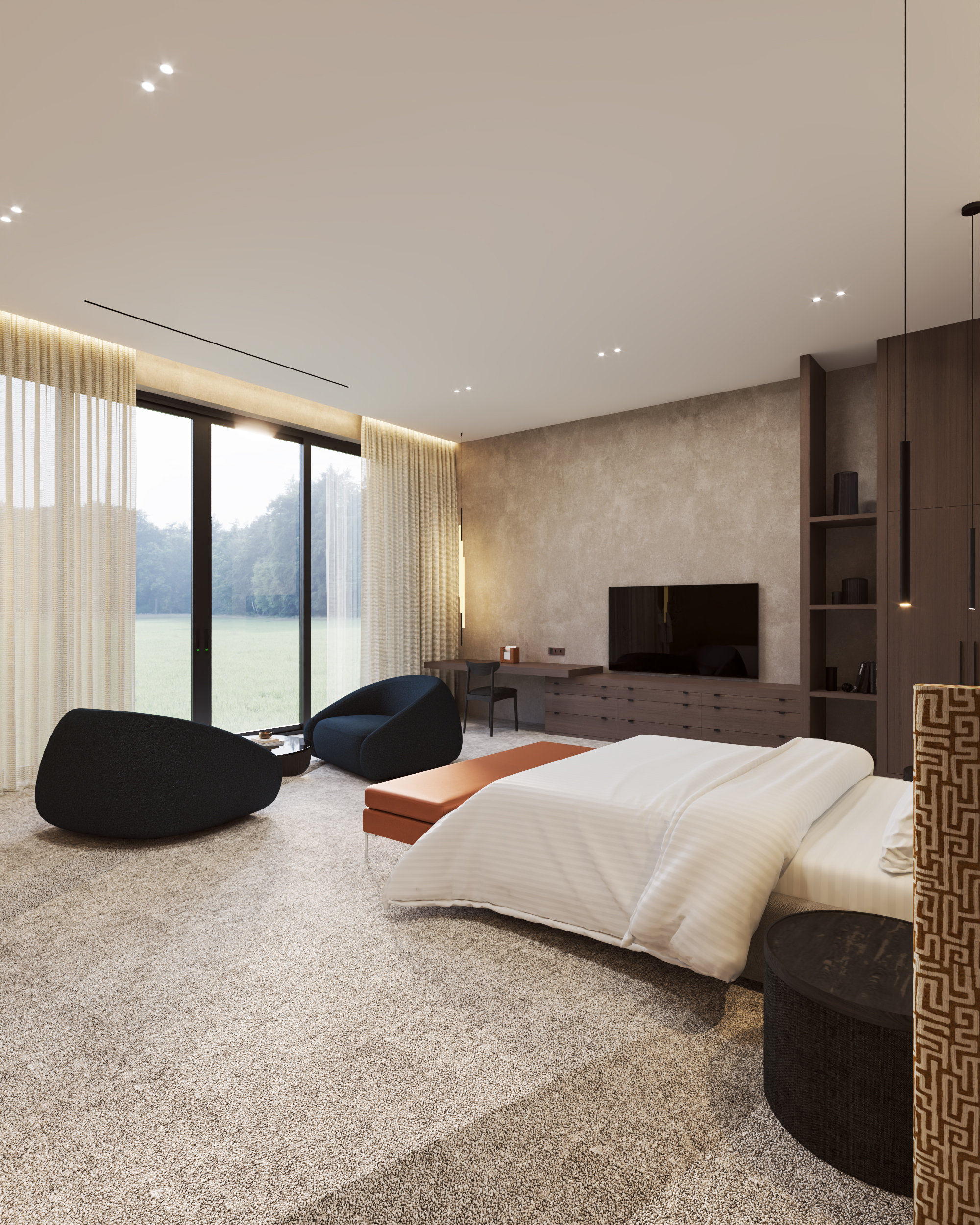 Apartamentams pasirinkta Tarkett Parade Deluxe Silky ruloninė kiliminė danga. Minkštas, tankaus plauko ir patvarus kilimas erdvei suteikia prabangos ir komforto jausmą.