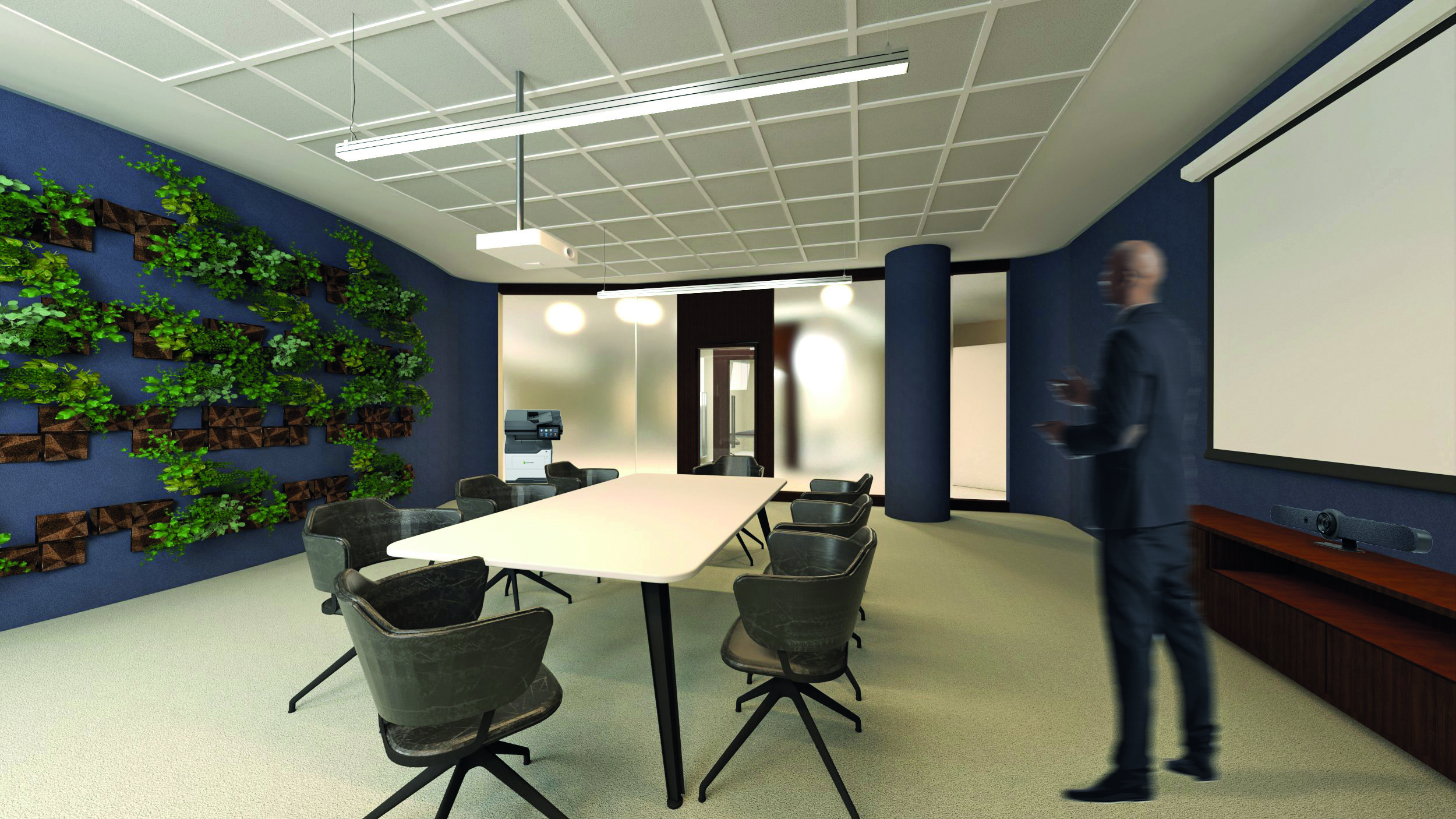 BIZNIO MAŠINŲ KOMPANIJA. Konferencijų salėje suplanuotas ypač efektyviai veikiantis saugios konstrukcijos daugiafunkcis spausdintuvas „Lexmark MX632adwe“. Juo galima dokumentus spausdinti, kopijuoti, skenuoti ir siųsti faksu. Modernus jutiklinis ekranas, greitas pirmojo puslapio spausdinimas ir iki 50 puslapių per minutę spausdinimo greitis didina darbo efektyvumą, o 31 tūkst. puslapių siekianti dažų išeiga mažina biuro išlaidas.