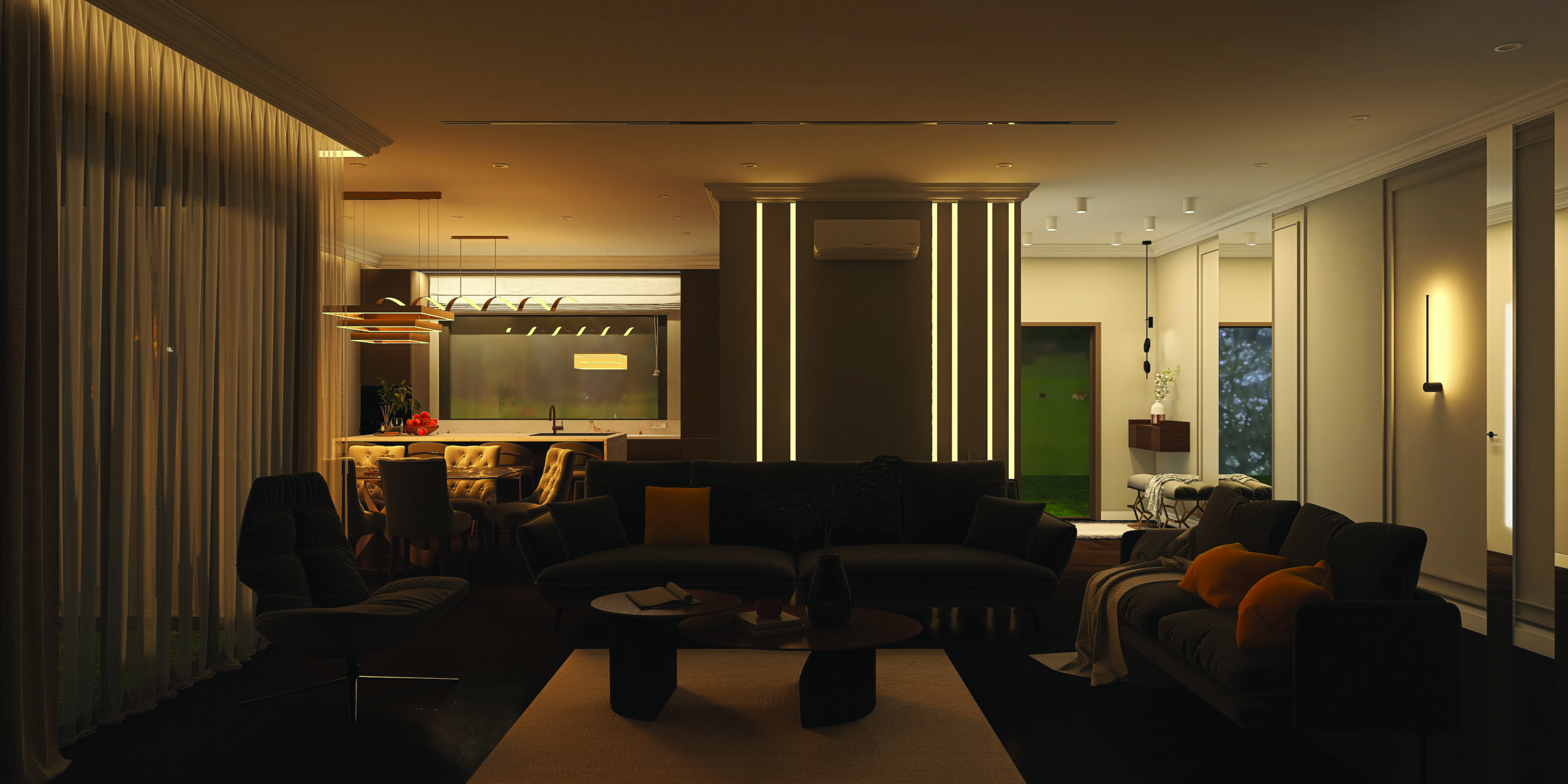 Šiuolaikiško žmogaus namai – tai harmonija tarp technologinio modernumo, natūralumo ir estetikos. Projekto vizija siekia sukurti erdvę, kurioje tvarumas tampa prabanga, naudojant atsinaujinančiusenergijos šaltinius, ilgaamžes ekologiškas medžiagas bei inovatyvius partnerių sprendimus. Ergonomiškas interjeras pritaikytas komfortui, kur technologijos supaprastina kasdienybę, o išmanūsapšvietimo, šildymo ir vėdinimo moduliai kuria tvarią aplinką. Estetiškai apgalvota erdvė tampa ne tik modernia gyvenimo vieta, bet ir įkvėpimu visiems, siekiantiems harmoningai derinti dizainą, funkcionalumą ir gamtai draugišką požiūrį.