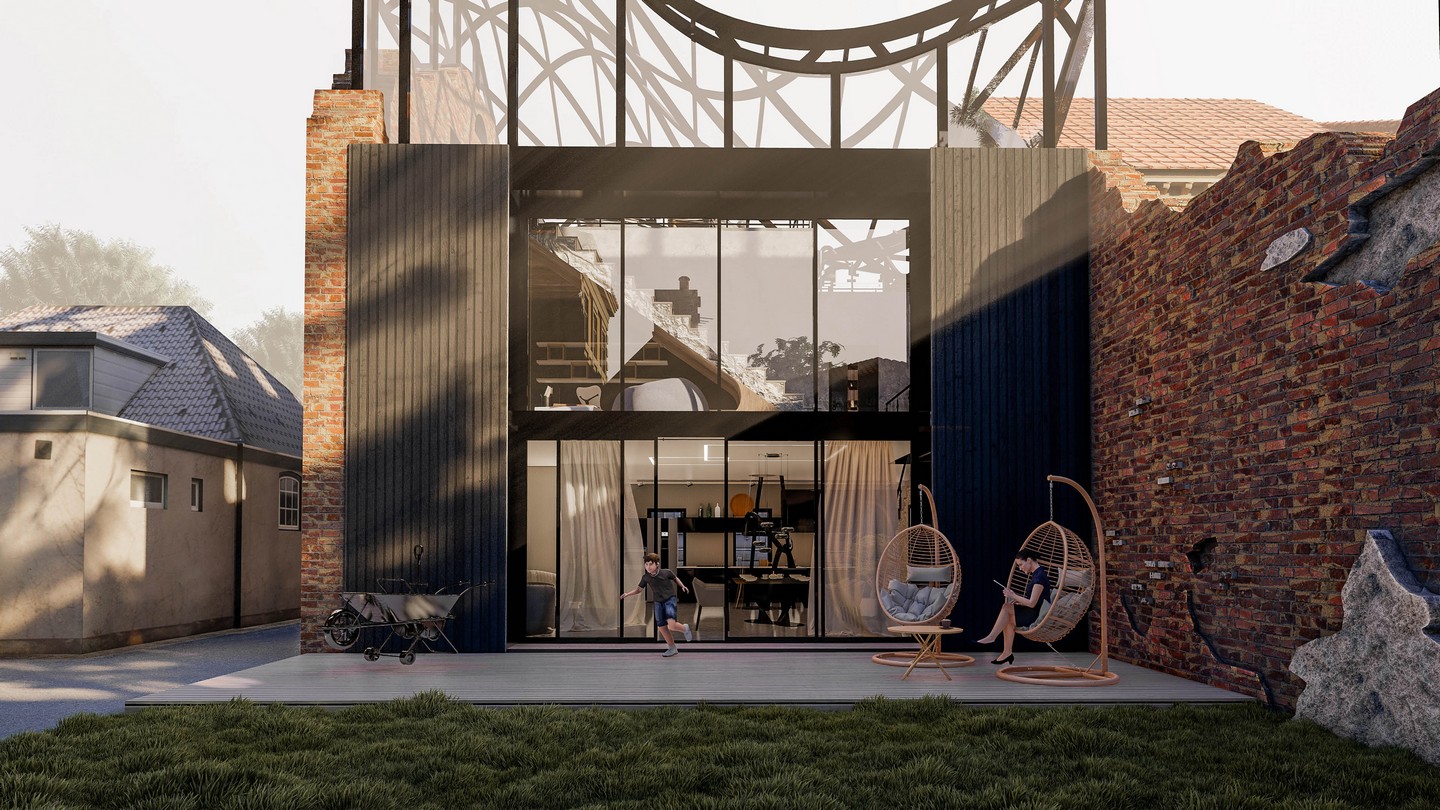 Pagrindinis pastato akcentas yra parametrinis stiklinis stogas, tarnaujantis kaip šviesduobė visiems pastato aukštams, tiekdamas būtiną saulės šviesą tankiai urbanizuotoje aplinkoje. Pastatas savo funkcija pritaikytas ateities šeimai, kurios gyvenimo būdas neatskiriamas nuo miesto.