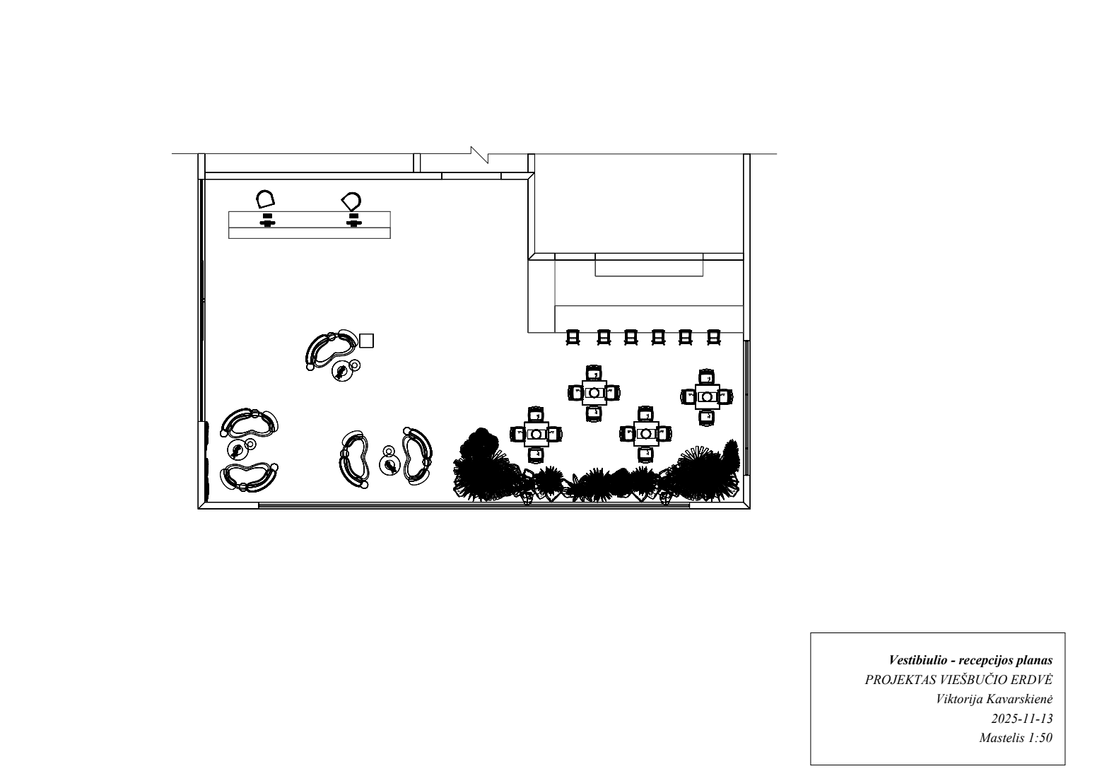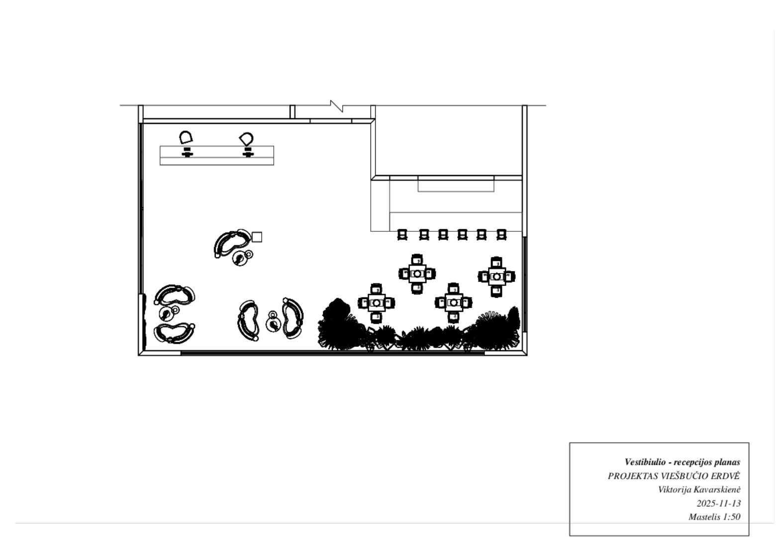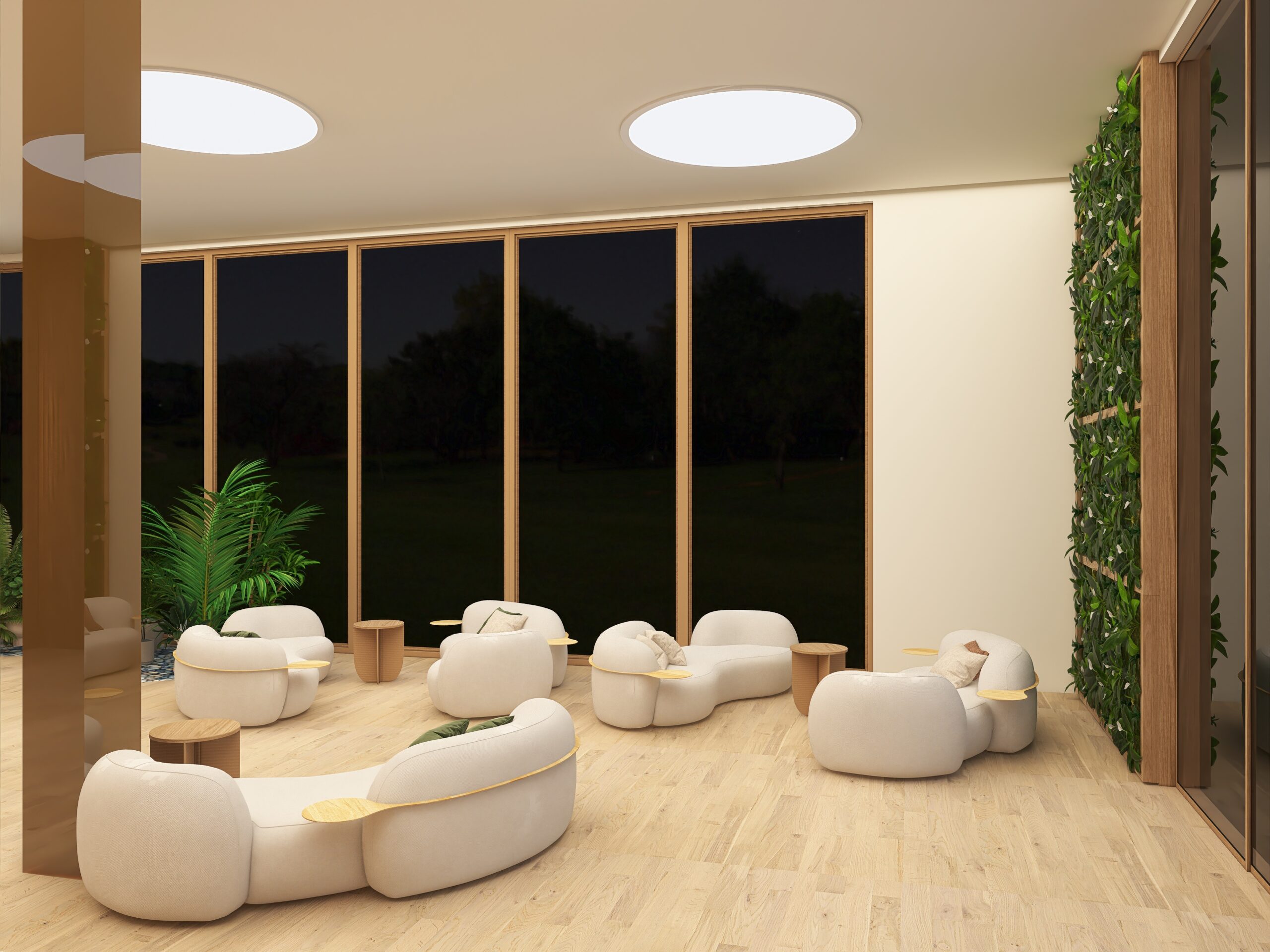 Vestibiulio zona nuteikia tylai, susitelkimui ir švelniam grįžimui į save. Natūralios medžiagos ir žaluma organiškai susilieja su už lango atsiveriančia parko aplinka. Tai vieta, kur galima ramiai palaukti savo numerio arba atsikvėpti po ilgos dienos su puodeliu kavos jaukioje baro zonoje.