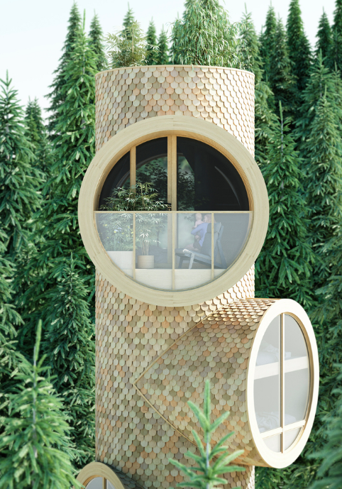 Ekologinių namelių medyje koncepciją sukūrė Chris Precht ir jo žmona Fei Tang Precht – „Studio Precht“. Šiuo projektu autoriai kviečia pažvelgti į mišką ir gamtą vaikų akimis.