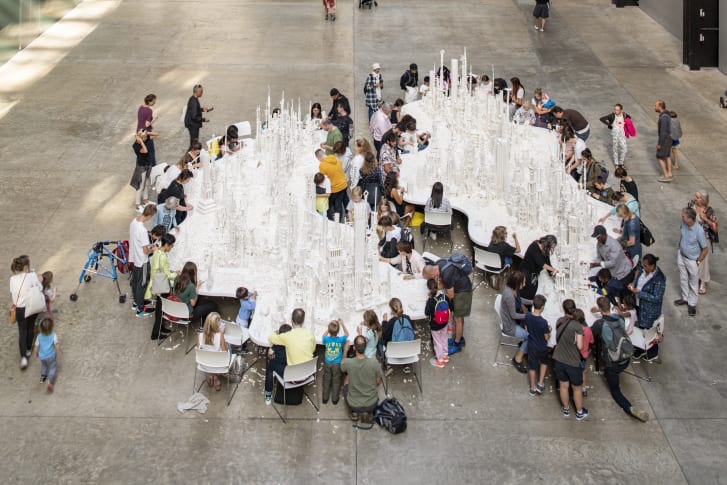 Danų ir islandų menininkas Olafūras Eliassonas pakvietė žmones pastatyti „ateities miestą“ ant dviejų 10 metrų ilgio lentų, sudarančių Londono žemėlapio formą.