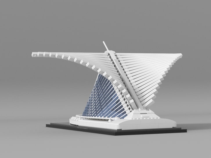 „Lego“ gerbėjas Vida Andras bando įveikti šį stulbinantį išbandymą. Praėjusio amžiaus pabaigoje Santjago Calatravos Quadracci suprojektavo postmodernų Milvokio meno muziejų. Jo naudojamos baltos spalvos, linijos ir rėmai bei lenktos struktūros sukuria tvirtą ryšį tarp architektūros ir meno.