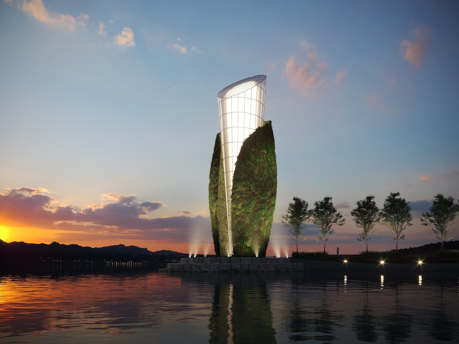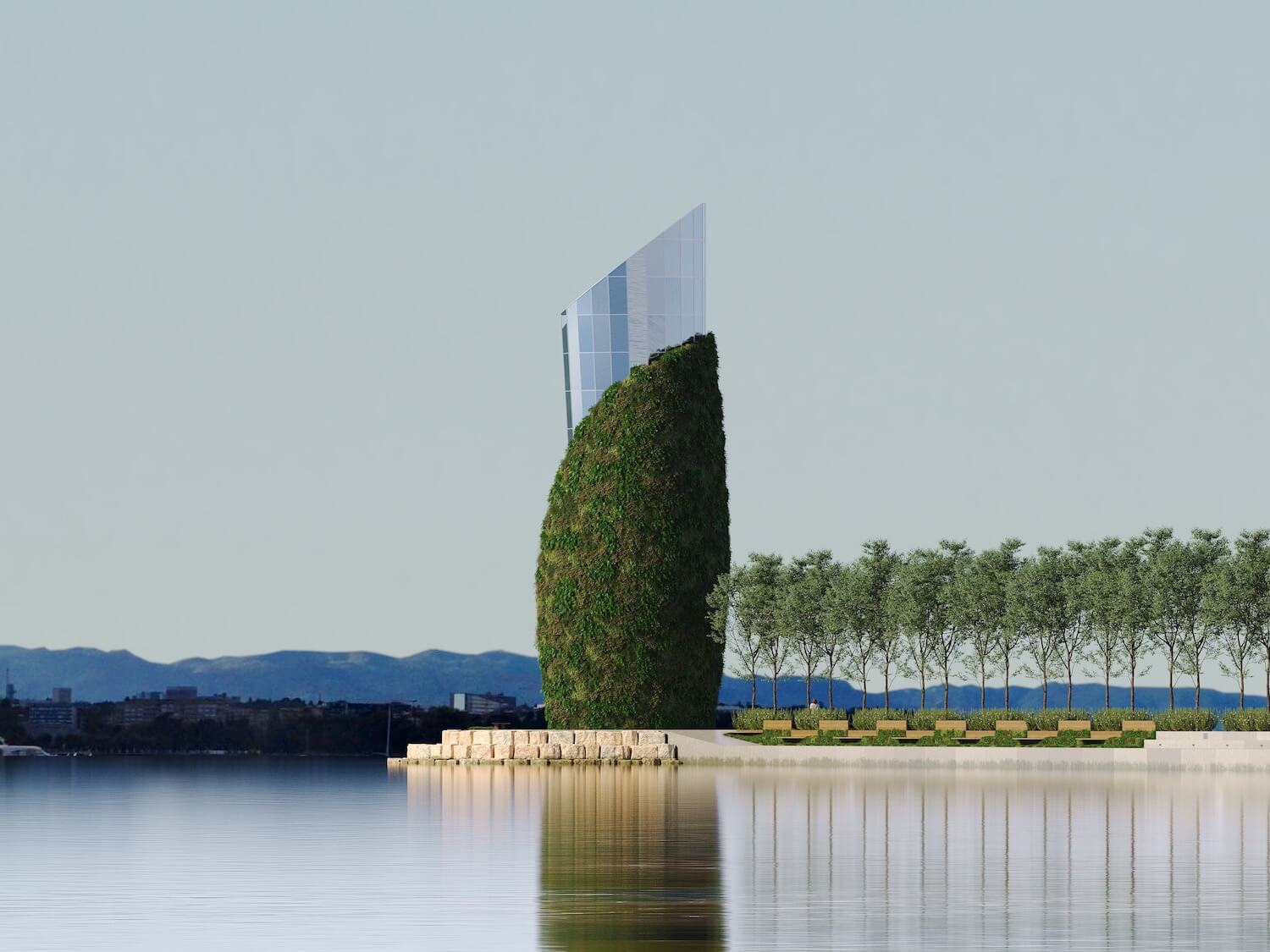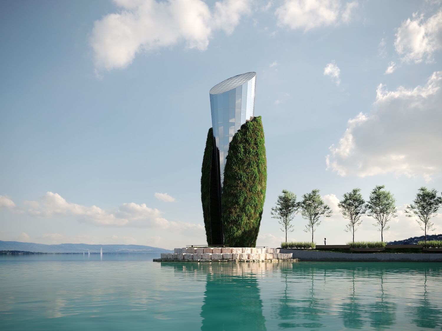 Kaip utopinė ateities vizija atrodantis švyturys suprojektuotas Ženevos miestui, vietai, esančiai Lemano ežero pakrantėje.