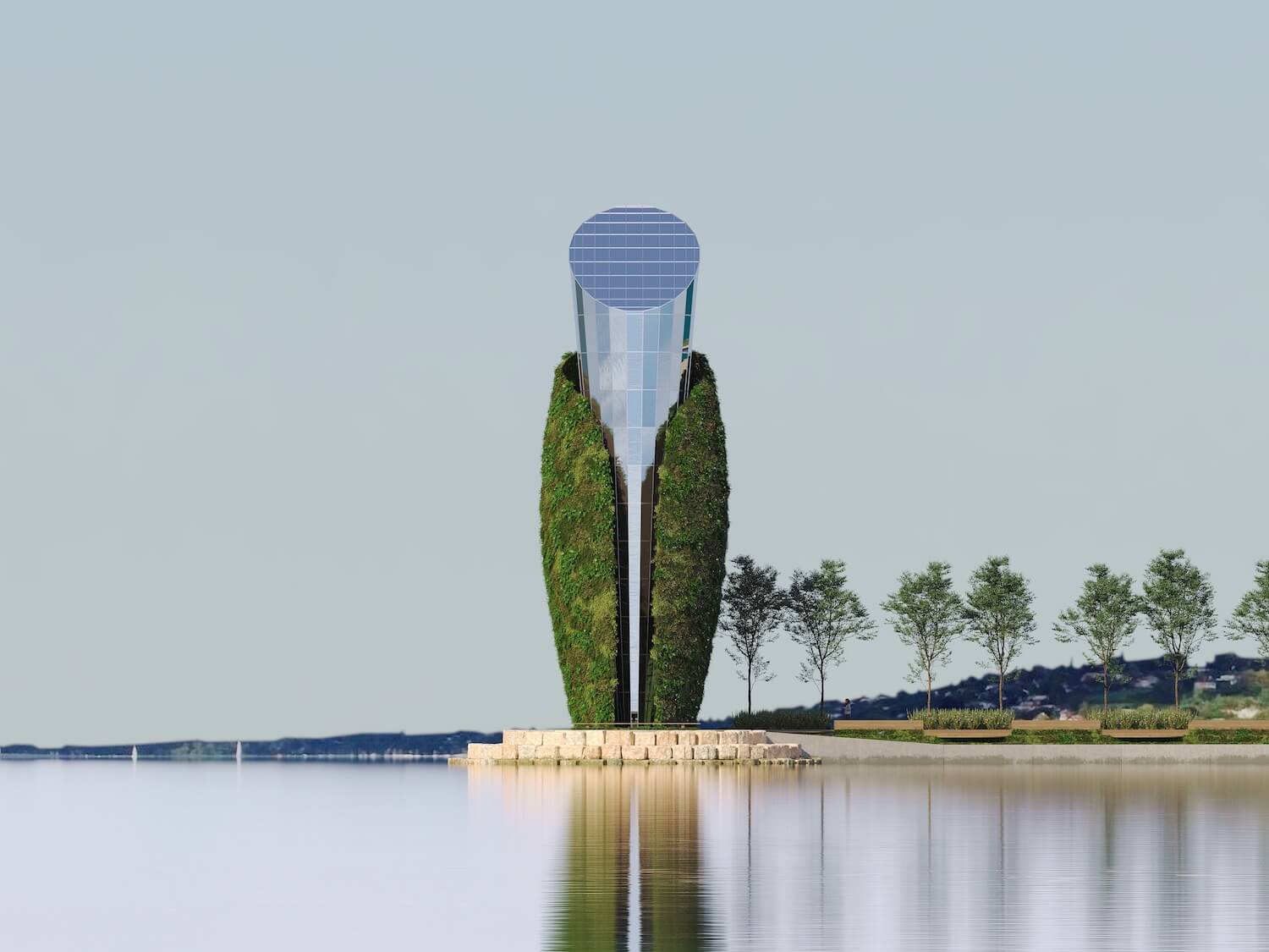 Išskirtinė ir švyturio konstrukcija. Augalinė jo danga skirta surinkti lietaus vandenį, o fasadui naudojamos skaidrios fotovoltinės plokštės generuos sunaudojamą švyturio energiją.