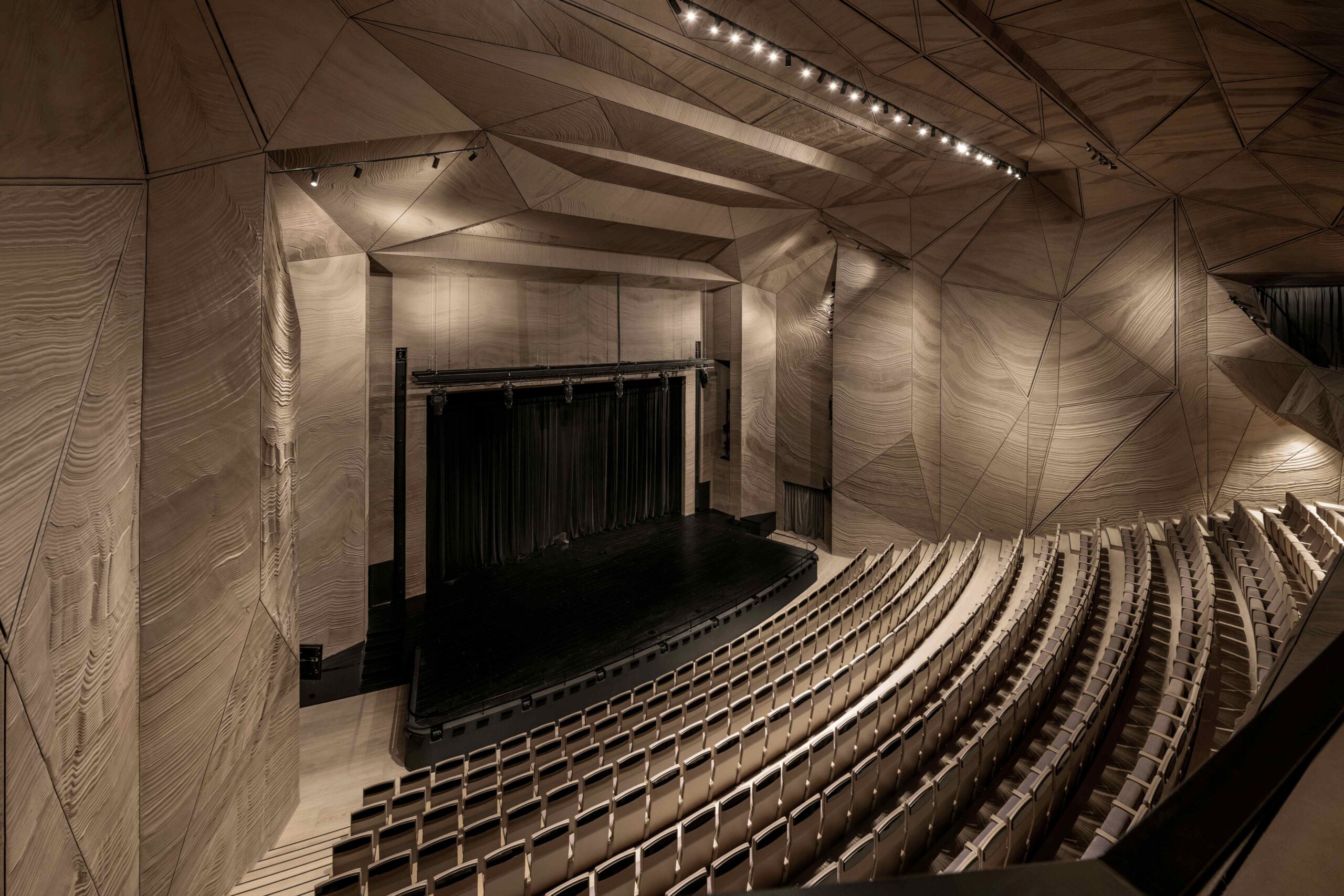Teatro interjeras išsiskiria ne prabanga, o emocinės patirties architektūra – šiltomis, jautriomis erdvėmis, kurios kuria ryšį su žiūrovu.