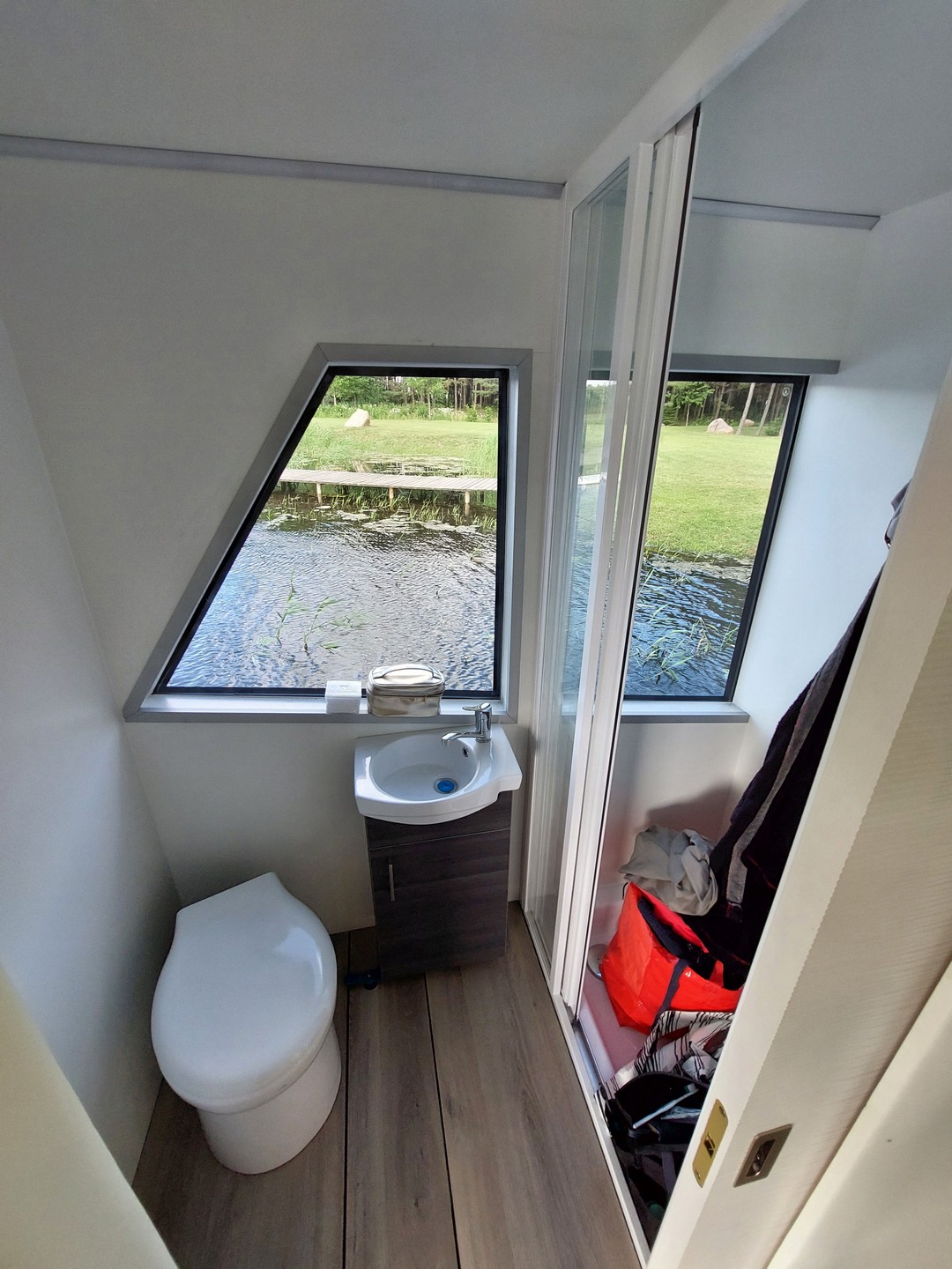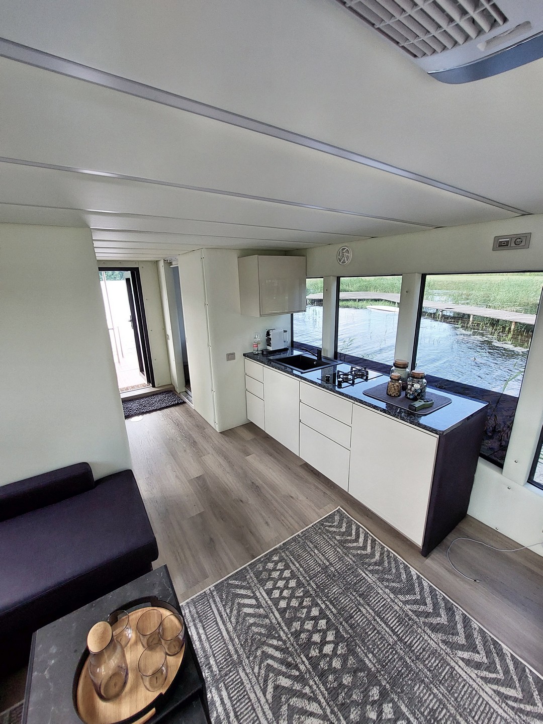 Laive įrengti dvigubo paketo grūdinti stiklai ir nerūdyjančio plieno tvorelės, siekiant suteikti „namui ant vendens“ papildomo saugumo.