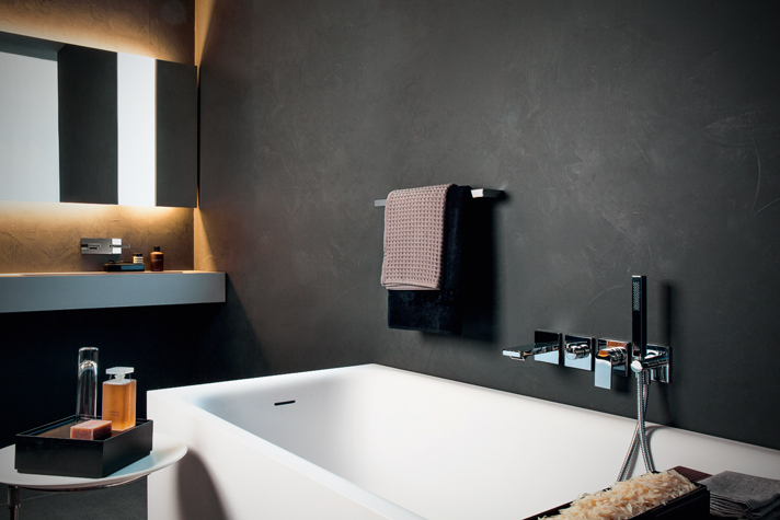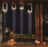 Dar viena įspūdinga tendencija – stiklinės dušo galvos, kurios ne tik neužgožia jokio šviesos šaltinio, bet ir suteikia vandeniui žydrą spalvą.