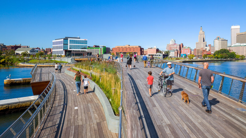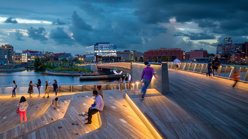 JAV architektūros firma „Inform Studio“ ir „Buro Happold“ suprojektavo lenktą medinį pėsčiųjų tiltą, kad sujungtų du parkus Providense. Providensas yra vienas seniausių Jungtinių Amerikos Valstijų miestų ir Rod Ailando valstijos sostinė.