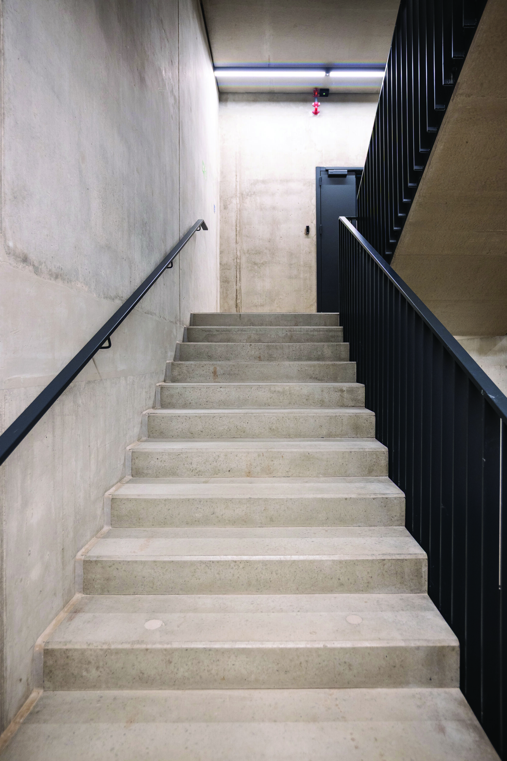 „Gaudrė“ rūpinosi ir pirmojo etapo gyvenamojo komplekso bendrųjų erdvių apšvietimu: laiptinėse sumontuoti sieniniai šviestuvai gražiai apšviečia vertikalius paviršius ir sukuria saugios, jaukios aplinkos jausmą. Bendrųjų erdvių apšvietimas taip pat valdomas automatiškai, DALI sistema, tad nereikia jokių jungiklių, o svarbiausia – jį galima programuoti pagal poreikius.