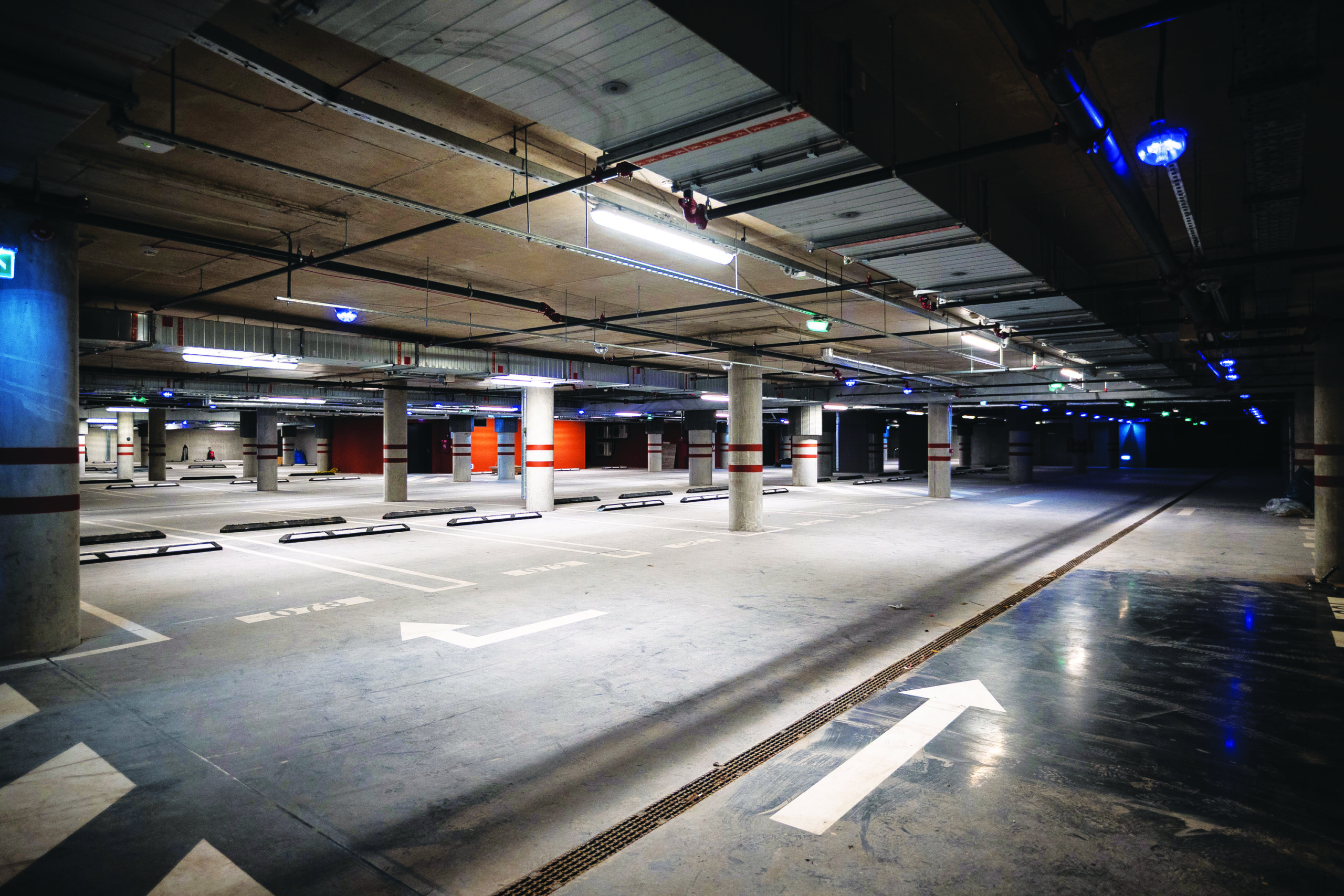Požeminiame aukšte esanti automobilių saugykla sujungta su šalia baigiamo statyti „arches“ komandos projektuoto gyvenamojo komplekso požemine automobilių saugykla. Ir po žeme, ir ant žemės įrengta dviračių transporto infrastruktūra.