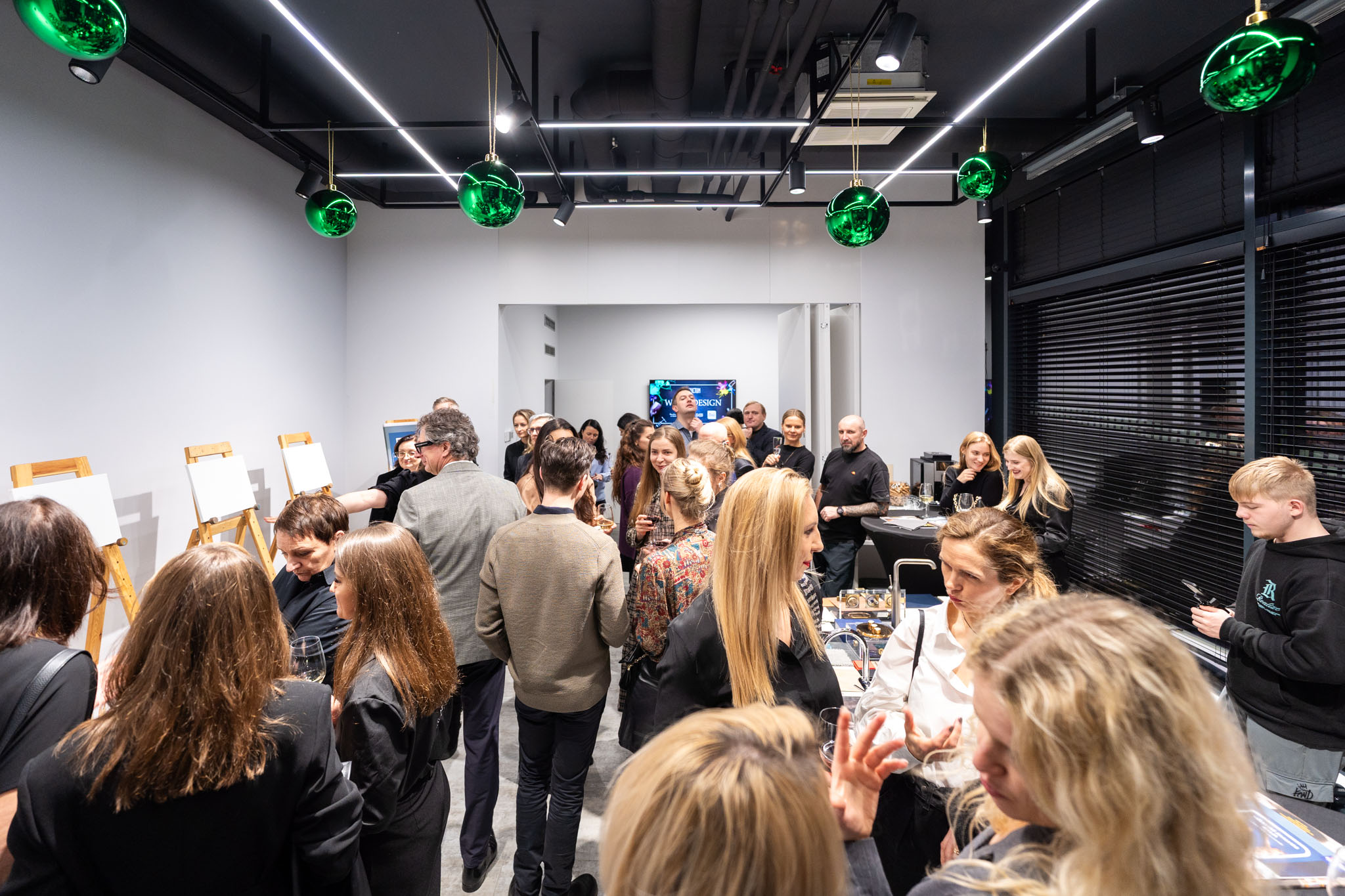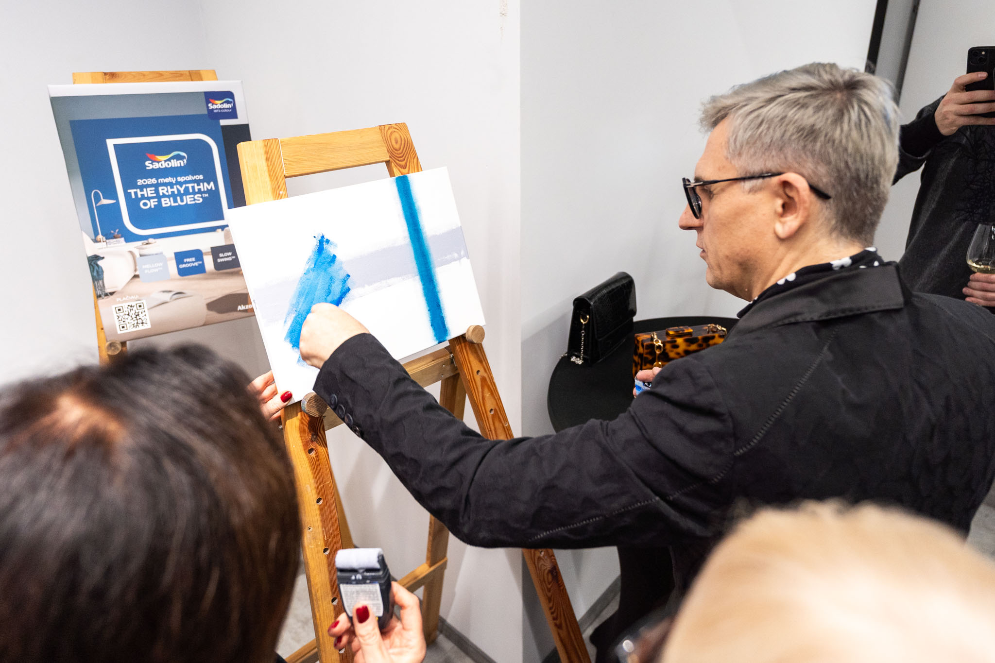Vakaro pradžioje dalyviai buvo pakviesti į kūrybinį procesą – suskirstyti į grupes, jie leidosi į pirmąją patirtį: nuo spalvinio pagrindo formavimo naudojant „Sadolin Ambiance“ testerius iki medžiagų, faktūrų ir objektų derinimo. Ant drobių formavosi būsimo interjero nuotaikos, o aplink jas – apgalvotai pasirinkti partnerių sprendimai: JUNG jungikliai, GROHE maišytuvai, EGGER stalviršiai ir baldinių plokščių sprendimai, UAB Vende/Interjero sala plytelės bei Dangų studijos dangos. Tai priminė sumažintą realaus projektavimo procesą, kuriame svarbus kiekvienas sprendimas ir jų tarpusavio dermė.