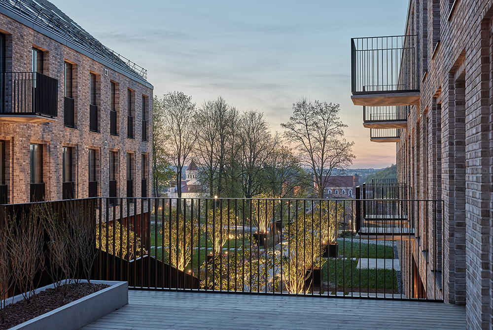 Anot gyvenamųjų namų kompleksą projektavusios architektės Andrės Baldišiūtės, iššūkių projekto metu tikrai netrūko. „Projektuojant senamiestyje siekėme turėti žalius kiemus, kupinus augalų ir žydinčių medžių, todėl automobilių stovėjimo aikštelė sutalpinta po žeme. Labai svarbus aspektas, kuriam prireikė itin atsakingų sprendinių paieškos, projektuoti apželdintas terasas virš požeminės automobilių stovėjimo aikštelės, kurios konstrukcijos turi būti tokios tvirtos, kad atlaikytų medžių, augalų ir jų vazonų apkrovas, – sako A. Baldišiūtė. – Tačiau visi kiemai kupini įvairių žydinčių augalų, vaiskrūmių, krūmų, medelių, nes būtent tai aplinkai suteikia žavesio ir paverčia ją dar jaukesne erdve.“