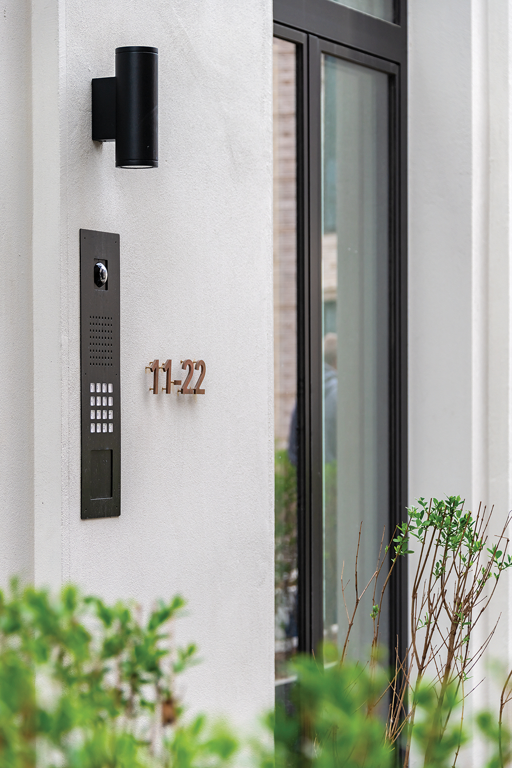 V. Bijūnas pasakoja, kad prie pagrindinių įėjimų buvo sumontuotos laisvai pastatomos „Siedle Steel“ dizaino serijos lauko stotelės. Specialios konstrukcijos ir spalvos lauko stotelėse įdiegta galimybė iš sąrašo pasirinkti gyventoją, kuriam skambinti – tai daug patogiau, nes nereikia atmintinai prisiminti buto numerio.