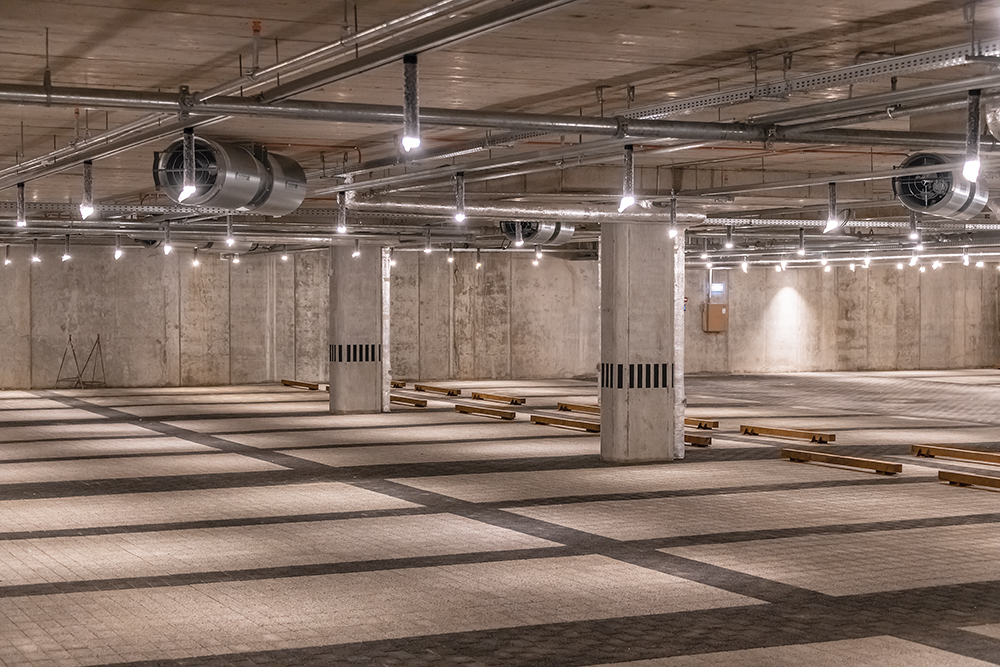Taip pat ypatingas dėmesys skirtas požeminės automobilių stovėjimo aikštelės apšvietimui.