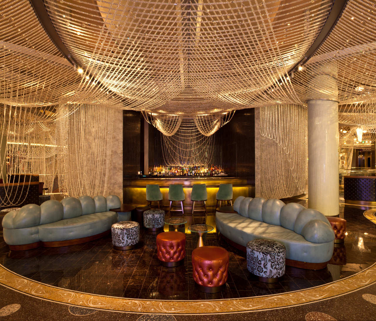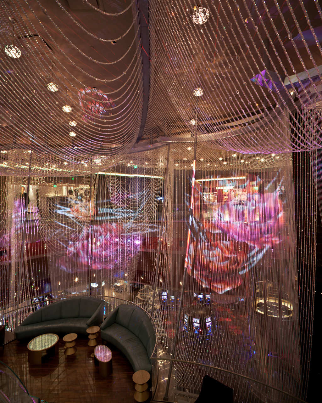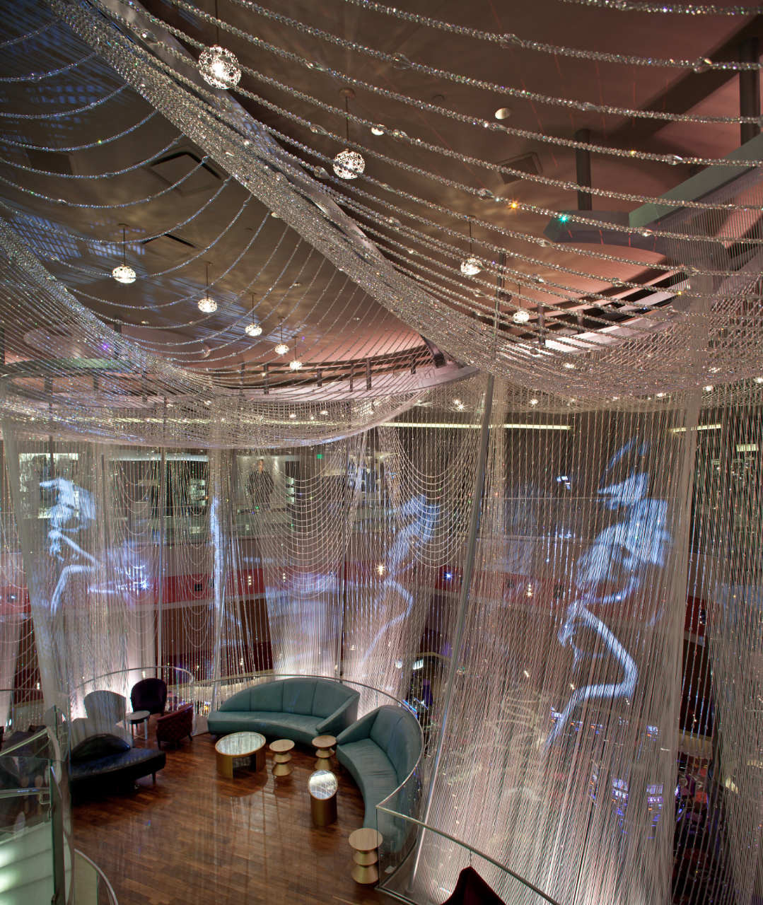 Sietynas yra trijų aukštų daugiasluoksnis poilsio kambarys ir baras, dengtas banguotomis virvelių ir krištolo užuolaidomis, sukuriančiomis fantastiško apgyvendinto sietyno įspūdį. Sukurta net keletas skaitmeninių programų abiem virvelių sluoksniams, taip sukuriant skirtingus interaktyvius sluoksnius stebėtojams, esantiems svečių pusėje.