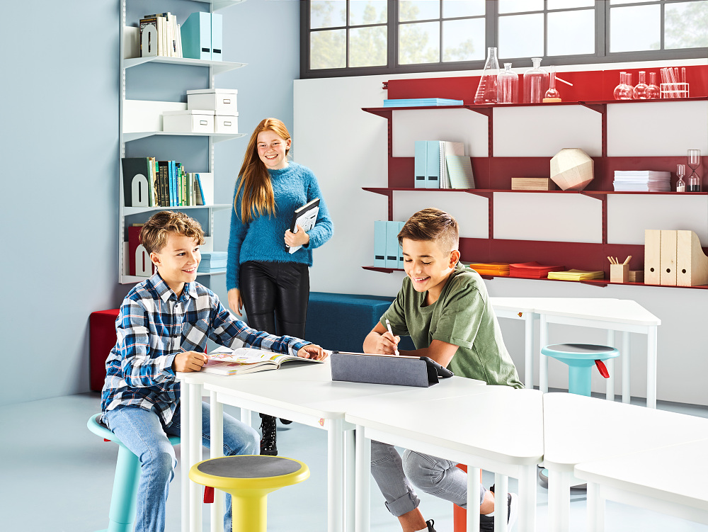 - Lankstumas. Baldai kuriami taip, kad būtų lengvai pritaikomi skirtingoms disciplinoms, pavyzdžiui, matematikai ryte ir muzikos pamokoms popiet.