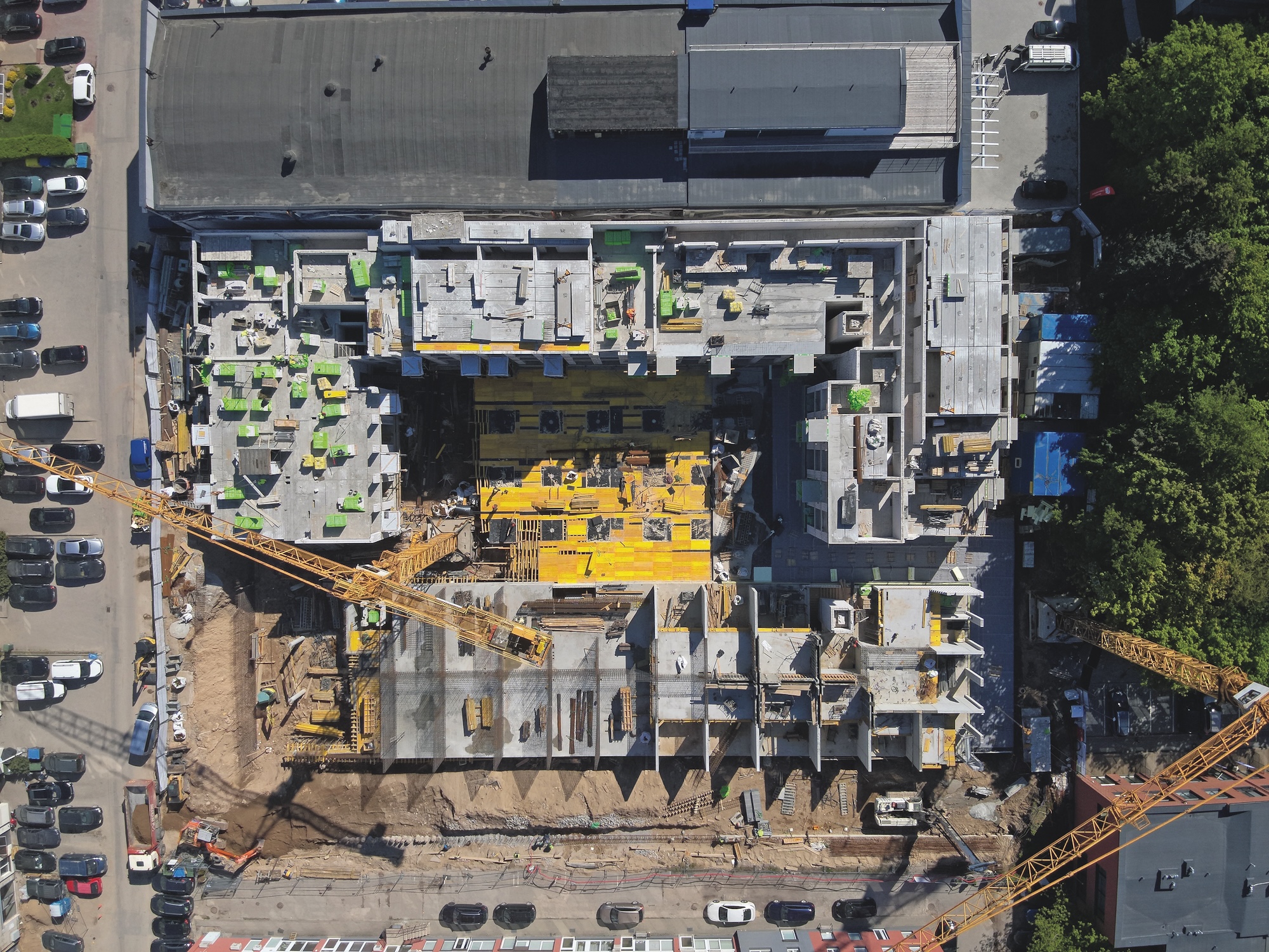 Prie gyvenamojo daugiabučio komplekso ir požeminės automobilių saugyklos monolitinių konstrukcijų statybos reikšmingai prisidėjo patikima ir ilgametė statybos bendrovė „Alginsta“.