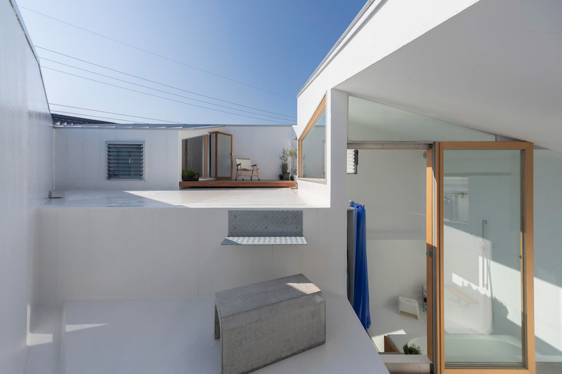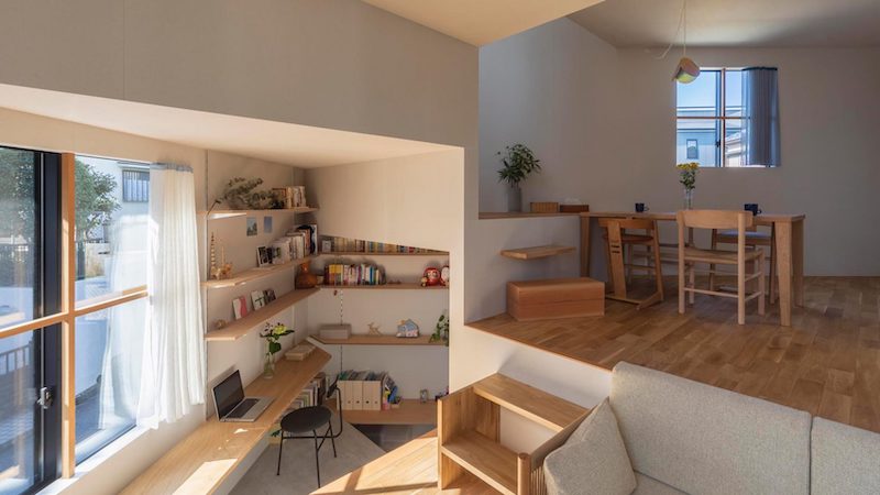 Trikampių ir stačiakampių platformų serija sukuria daugybę grindų lygių šiame name, esančiame Osakoje, Japonijoje. „Tato Architects“ suprojektuotas namas Takatsuki yra trijų aukštų pastatas, kuriame yra net 16 skirtingų grindų lygių.