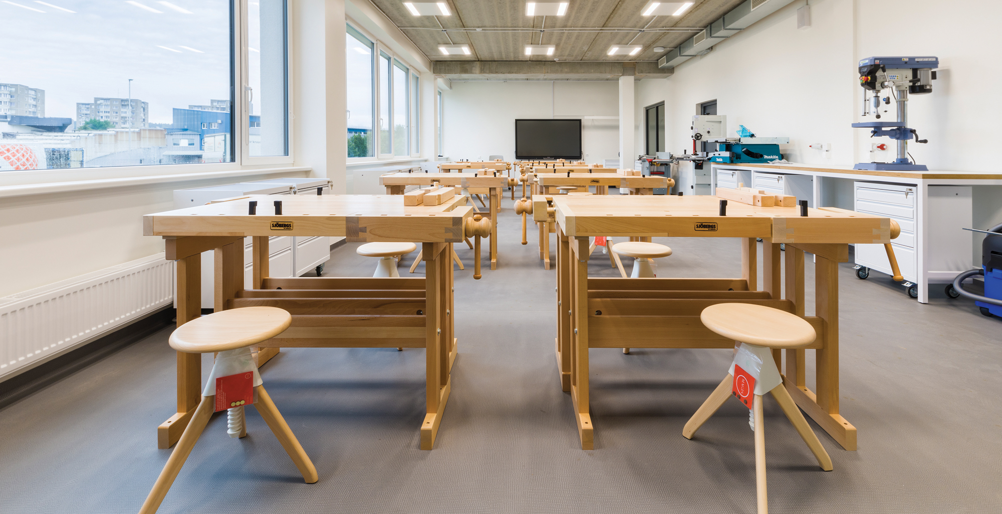 „Visi mūsų siūlomi sprendimai buvo orientuojami į konkrečių klasių poreikių išpildymą. Specializuotoms klasėms tiekėme ne tik baldus, bet ir įrangą. Pavyzdžiui, maisto technologijų klasę galima prilyginti profesionaliai virtuvei. Joje panaudoti darbo stalviršiai yra pagaminti iš vandeniui, garams bei mechaniniams poveikiams atsparių ir išskirtinai atrodančių plokščių „Compact HPL“, – pasakoja J. Vološinova.