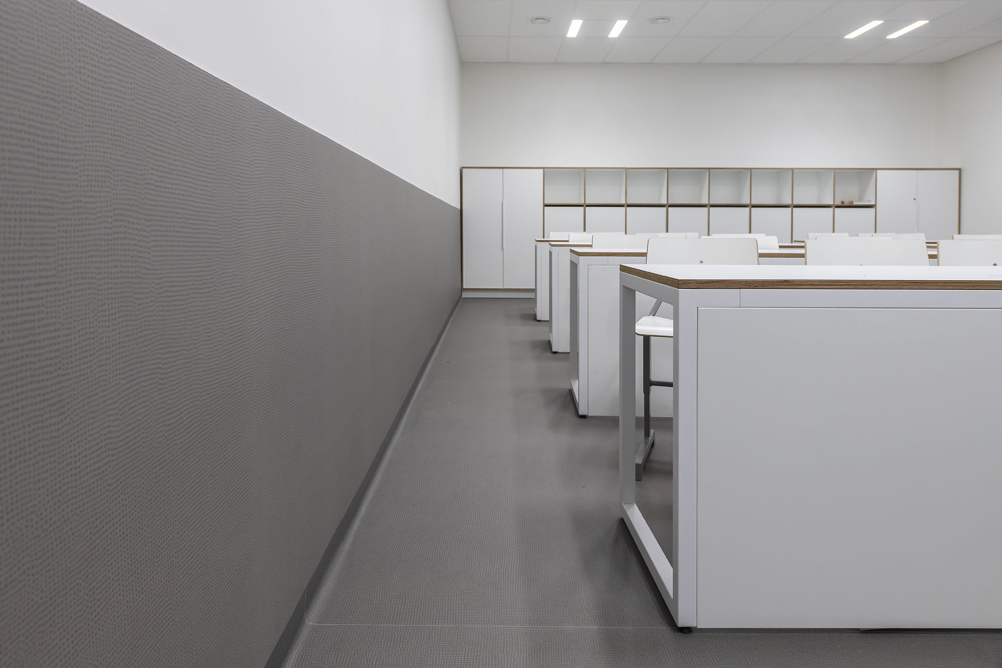 Mokyklose, taikant aukštesnius higienos reikalavimus, būtina palaikyti higienišką grindų dangos paviršių. Specialus dangos apdorojimas ir grindų grūdelių derinys leidžia sukurti neslystantį paviršių bei suteikia geresnį atsparumą nešvarumams.