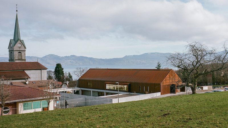 „Tai yra į išraiškingą aplinką integruotos mokyklos išplėtimas – priestatas, nuo kurio atsiveria vaizdas į Ženevos ežerą, įkurdintas tarp bažnyčios ir kapinių. Iššūkis buvo pastatyti modernios architektūros pastatą, kuris gerbtų ir atskleistų tokią senovinę bei jautrią aplinką“, – sakė „Ateliers O-S Architectes“ partneriai Vincentas Bauras, Guillaume’as Colbocas ir Gaël Le Nouëne’as.
