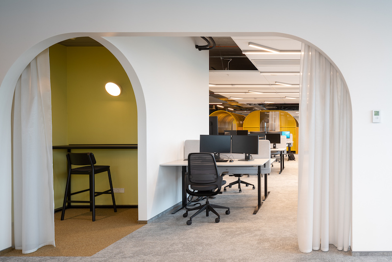 Anot jų, realizuota darbo erdvė yra itin mišri – atitinkanti skirtingus darbo stilius bei įpročius. Šiame biure darbuotojas darbo vietą gali rinktis pagal savo darbo pobūdį, tos dienos užduotį ar nuotaiką. Tai – šiame biure taikoma darbo vietos dalijimosi pagal veiklos pobūdį metodika (angl. activity-based working), kurią interjero kūrėjai architektai vadina drąsiu ir inovatyviu sprendimu. Ši metodika ypač naudinga, nes įprastų darbo vietų yra mažiau nei darbuotojų, tačiau jos gausiai keičiamos alternatyviomis darbo vietomis ir tai leidžia žmonėms rinktis.