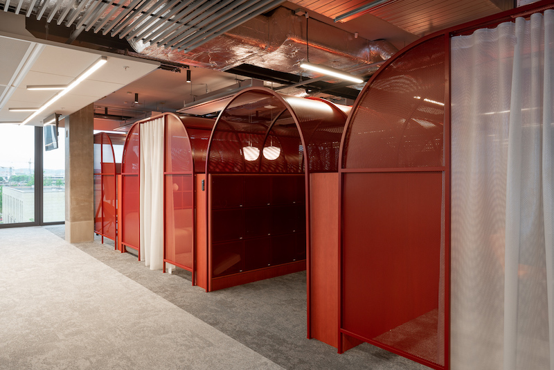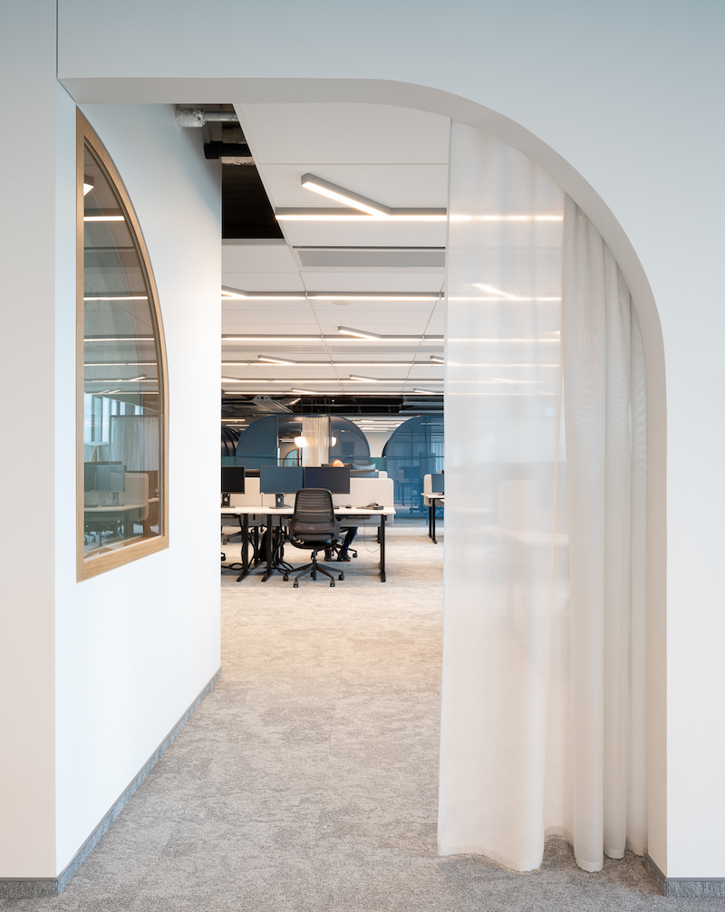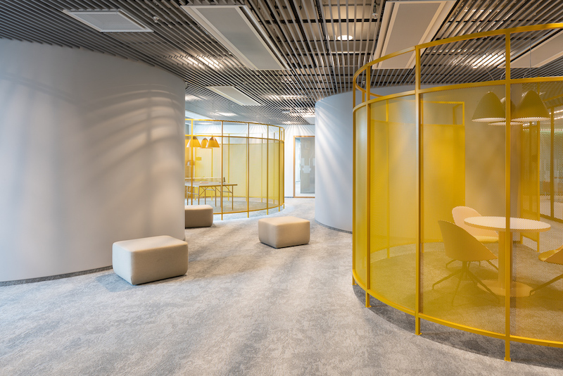 „Kiekvienas iš šešių aukštų padalinti į skirtingo aktyvumo zonas – nuo visiškai atvirų susėdimo zonų, laisvam darbui ar pokalbiams su kolegomis tinkančios erdvios virtuvėlės iki įprastų darbo vietų ar atskirtos tyliosios zonos, pritaikytos darbui, kuriam reikia susikaupti. Be to, dviejuose pastato aukštuose esančios aktyvios zonos yra skirtos būtent darbuotojams atsipalaiduoti, atsitraukti nuo darbo. Čia įrengtos žaidimų zonos. Darbo vietų įvairovę papildo ir didelis skaičius susitikimų kambarių, kurie taip pat varijuoja pagal uždarumą ir dydį. Susitikimų kambarių biure yra kiek daugiau nei 160“, – pasakoja A2SM atstovai.