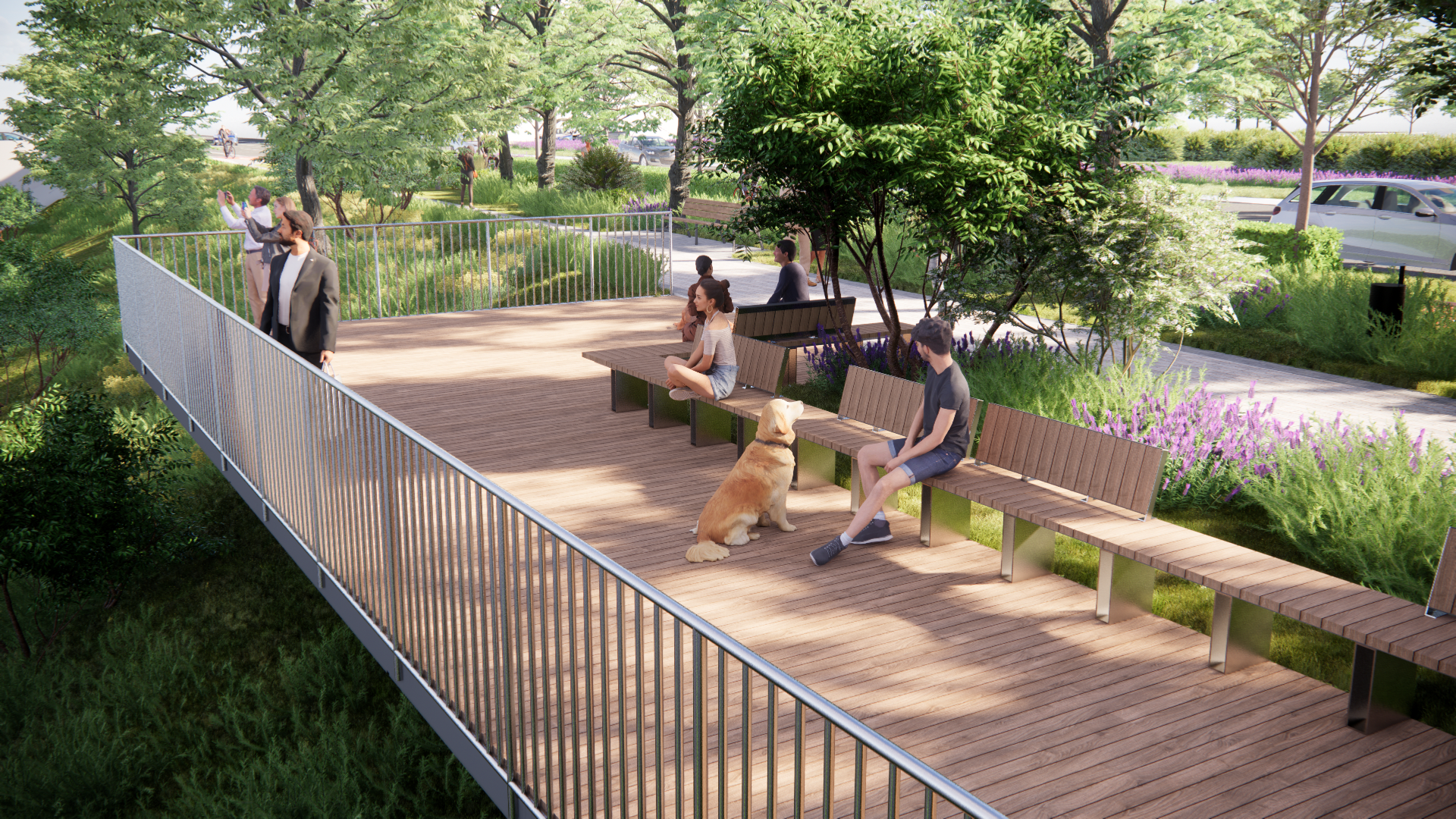 Naujieji pėsčiųjų takai sujungs miesto centrą su Neries krantinėmis. Platūs ir saugūs takai, vietomis atskirti želdinių juostomis nuo gatvės eismo, kvies vilniečius vaikščioti, sportuoti ar tiesiog pasimėgauti upės vaizdais. Ties sankryžomis su J. Tumo–Vaižganto, A. Jakšto ir A. Vienuolio gatvėmis bus įrengti pandusai ir laiptai, kad pėstieji lengvai pasiektų krantinę ir naujas poilsio erdves.