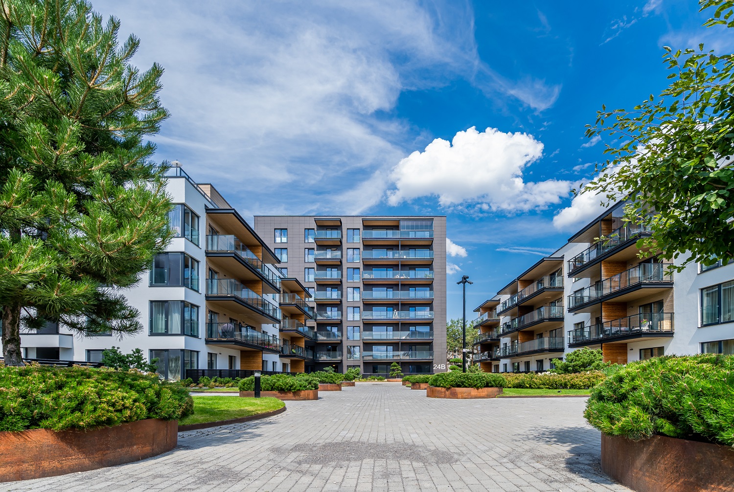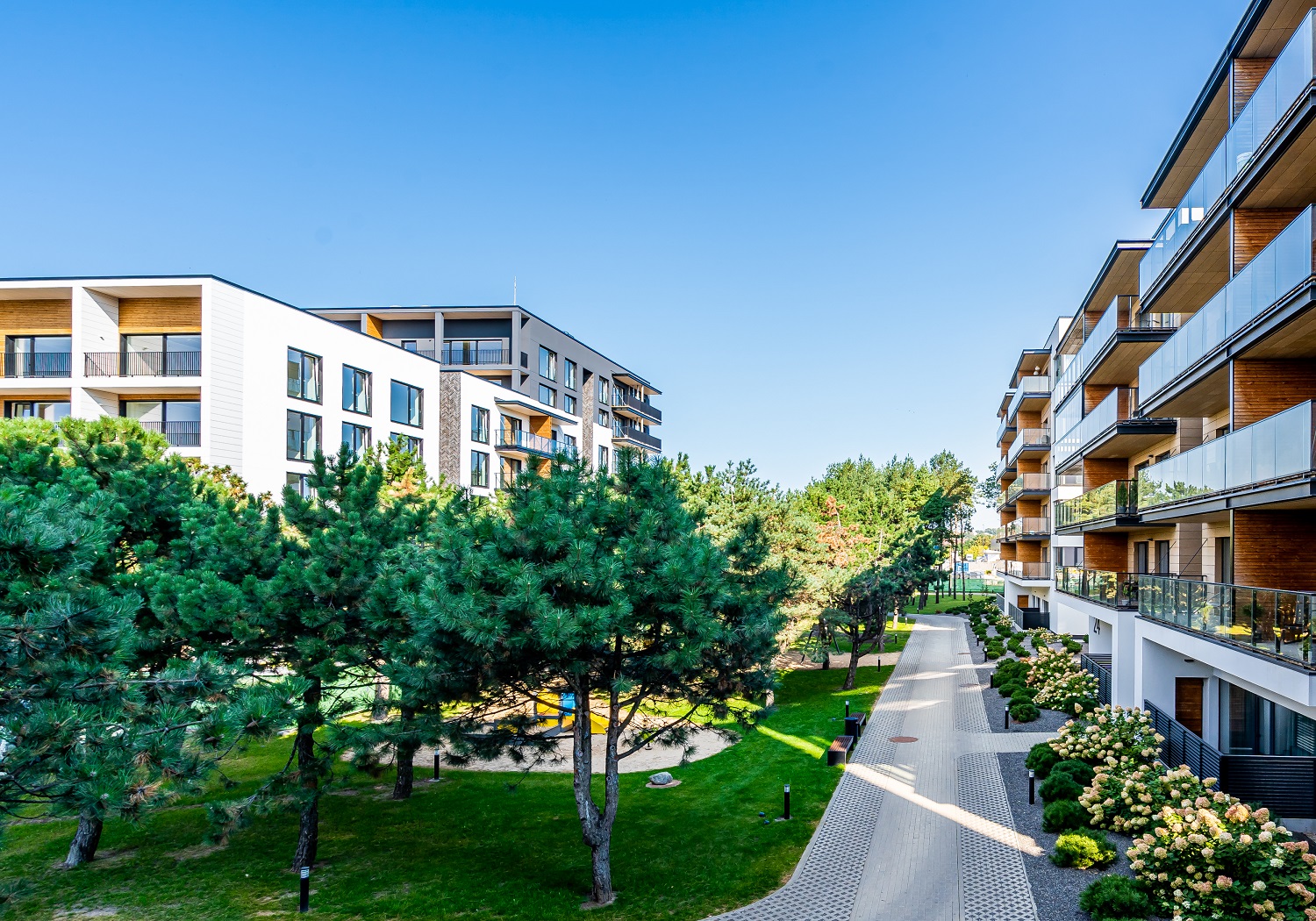 Daug dėmesio skirta ir daugiabučių kiemams. Juose pasitelkti išskirtiniai apželdinimo sprendimai, įrengtos žaliosios erdvės poilsiui ir nuo jų atskirtos saugios vaikų žaidimo aikštelės. Be to, daugiabučių kiemuose išsaugotas senasis Brastos pušynas, tad gamtos artumo kvartale išties netrūksta.