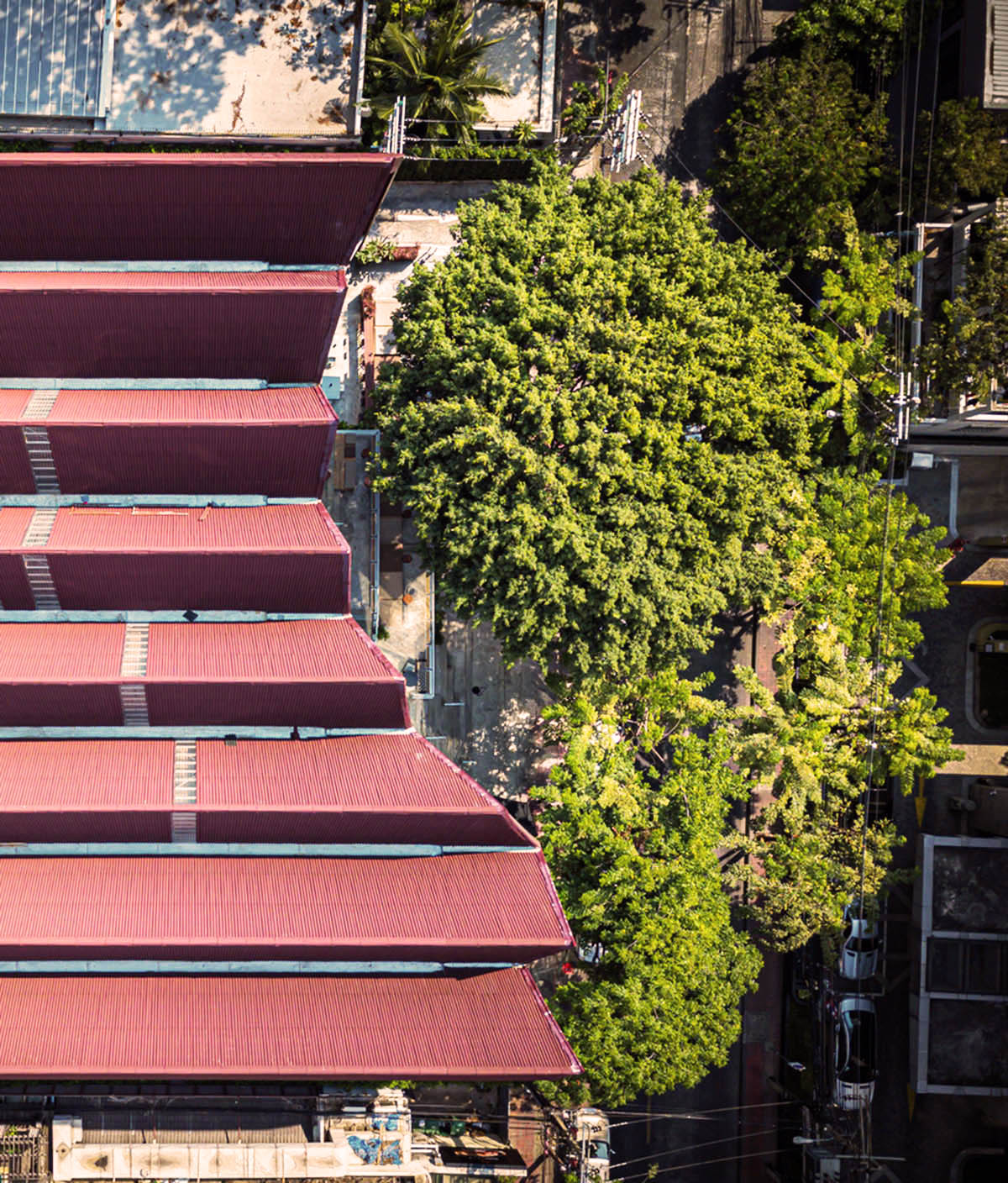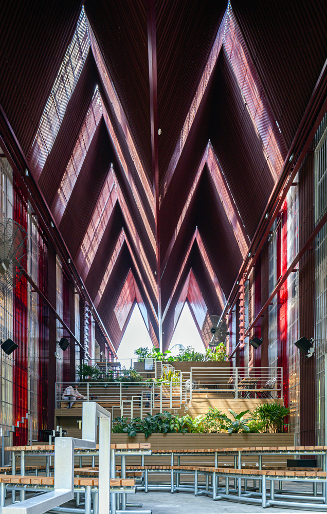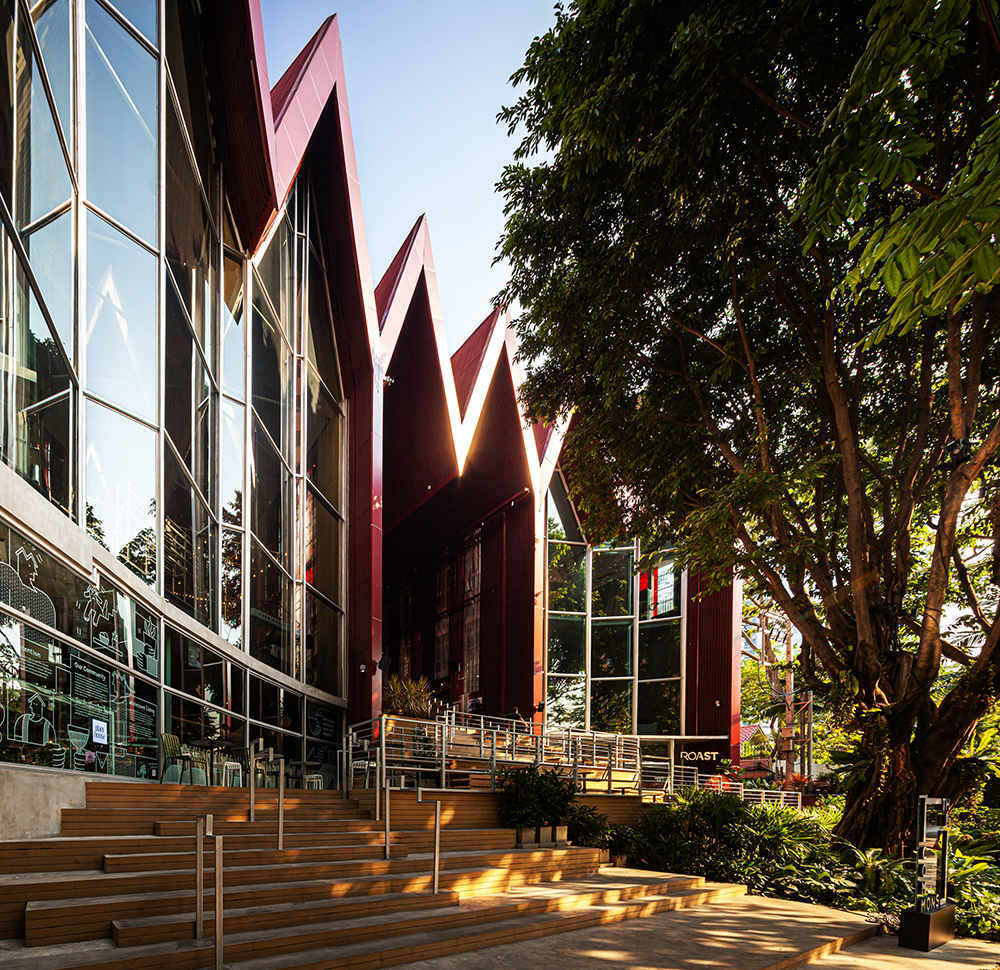 Žvelgiant į pastatą, dėmesį prikausto neįprastas stogas, suskaidytas atskirais segmentais. Aštuoni nedideli stogeliai vienu metu atspindi ir tailandiečių tradicijas, ir puikiai atitinka šiandieninius poreikius: specialios M formos konstrukcijos praplečia vidines erdves, leidžia išnaudoti visą pastato tūrį.