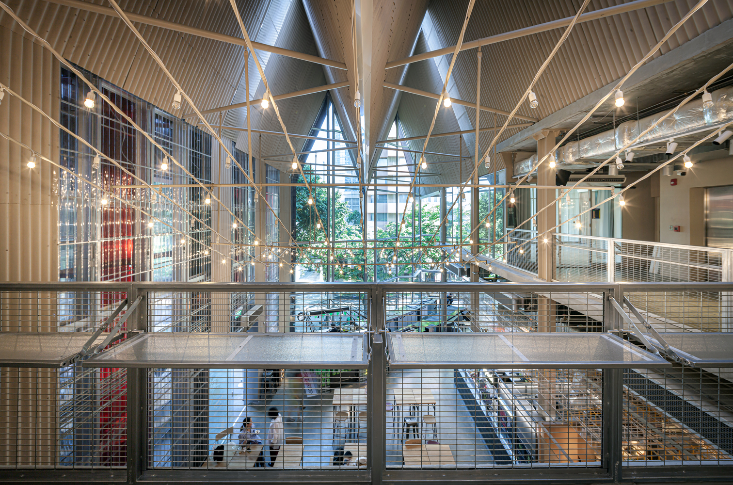 Daugiau nei 30 % viso pastato yra bendro naudojimo – didelė viešoji erdvė atvira nuo pirmojo aukšto iki kaskadinio viršaus. Viduje įrengti platūs laiptai su platformomis, sėdimosiomis vietomis bei augalais. Nėra jokio barjero, kuris atskirtų bendrąsias erdves nuo gatvės.