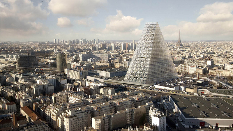 Šį mėnesį buvo pagaliau įveiktos teisinės kliūtys, trukdžiusios architektų studijos „Herzog & de Meuron“ sukurtai „kelionių piramidei“ iškilti Paryžiaus senamiestyje. Tai bus pirmasis dangoraižis, pastatytas Paryžiaus širdyje nuo 1973 metų.