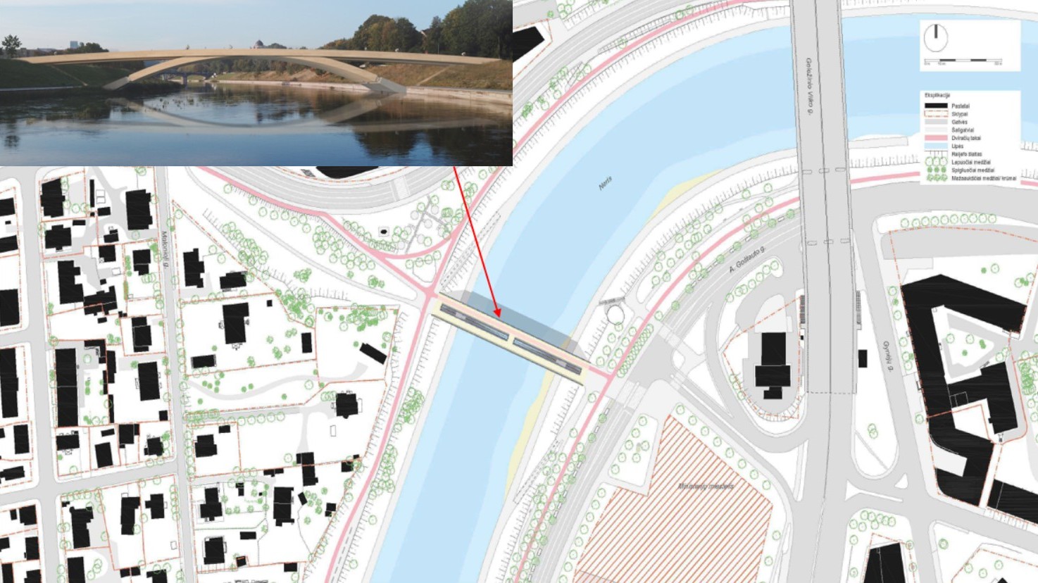 112 metrų ilgio ir 14 metrų pločio tiltas taps svarbia darnaus judumo infrastruktūros dalimi – jame bus aiškiai atskirtos erdvės pėstiesiems ir dviratininkams, o prieigos sklandžiai sujungs esamus ir atnaujintus takus bei krantines.