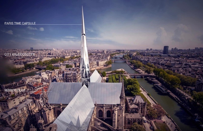Zeyu Cai ir Sibei Li tvirtina: „Mes tikime, kad 2019 metų gaisras pažymės naują „Notre Dame” eros pradžią“. Pasak kūrėjų, jų dizainas – daugialypiai veidrodžiai, švelniai atspindintys kontekstą, kartu su veidrodiniu stogu. Kiekvieną akimirką pastatas įgis naują išvaizdą, pagal nuolat kintančią miesto aplinką. Be to, bokšto viršuje yra laiko kapsulė, kurią bus galima atidaryti kas pusę amžiaus. Magnetinės levitacijos instaliacija buvo sukurta tam, kad išsaugotų praeities atmintį ir rezervuoti vietą ateities istorijai. Naujasis smaigalys atspindi žmonijos atmintį, buvimą ir viltį. Laiko kapsulė gali ritmingai judėti aukštyn ir žemyn. Vidinis bokšto atspindys sukuria miesto kaleidoskopą. Ryškų stiklą atgaivins šviesa. Visa struktūra atspindės šešėlį. Dizainerių Zeyu Cai ir Sibei Li Paryžiaus Dievo motinos katedros atnaujinimo vizija yra siekis iš naujo interpretuoti istoriją ir architektūrą.