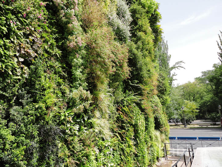Ispanijos sostinę vasarą kaitina svilinanti saulė, todėl gyventojai nuolat ieško būdų, kaip prisiglausti jaukiam pavėsyje. Puošni žalioji siena sukuria jaukią žalumą ir kviečia praeivius užsukti į „Prado“ muziejų. Augalai dengia visą sieną. Įsikūręs Madrido kultūros rajono širdyje su muziejais, esančiais už kiekvieno kampo, vertikalus sodas panašus į sienos grafitį. Spalvų raštas yra žavus meno, architektūros ir botanikos derinys.