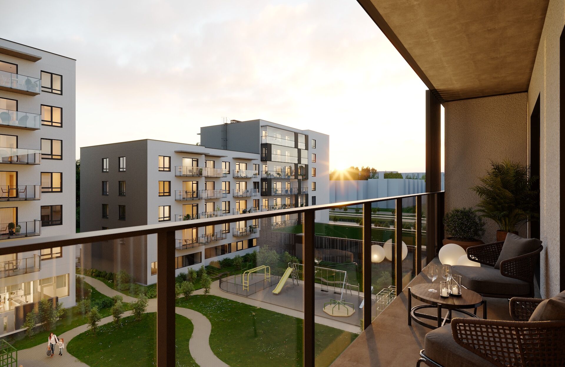 Kaip ir visuose projekto etapuose, šių namų gyventojams bus įrengtas uždaras vidinis kiemas su vaikų žaidimų aikštele bei požeminės automobilių stovėjimo vietos.