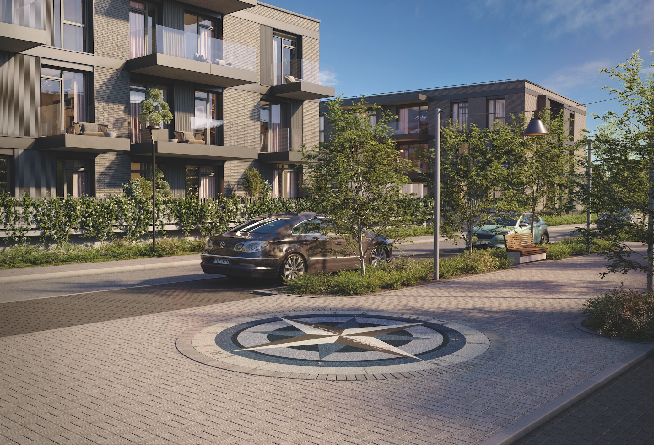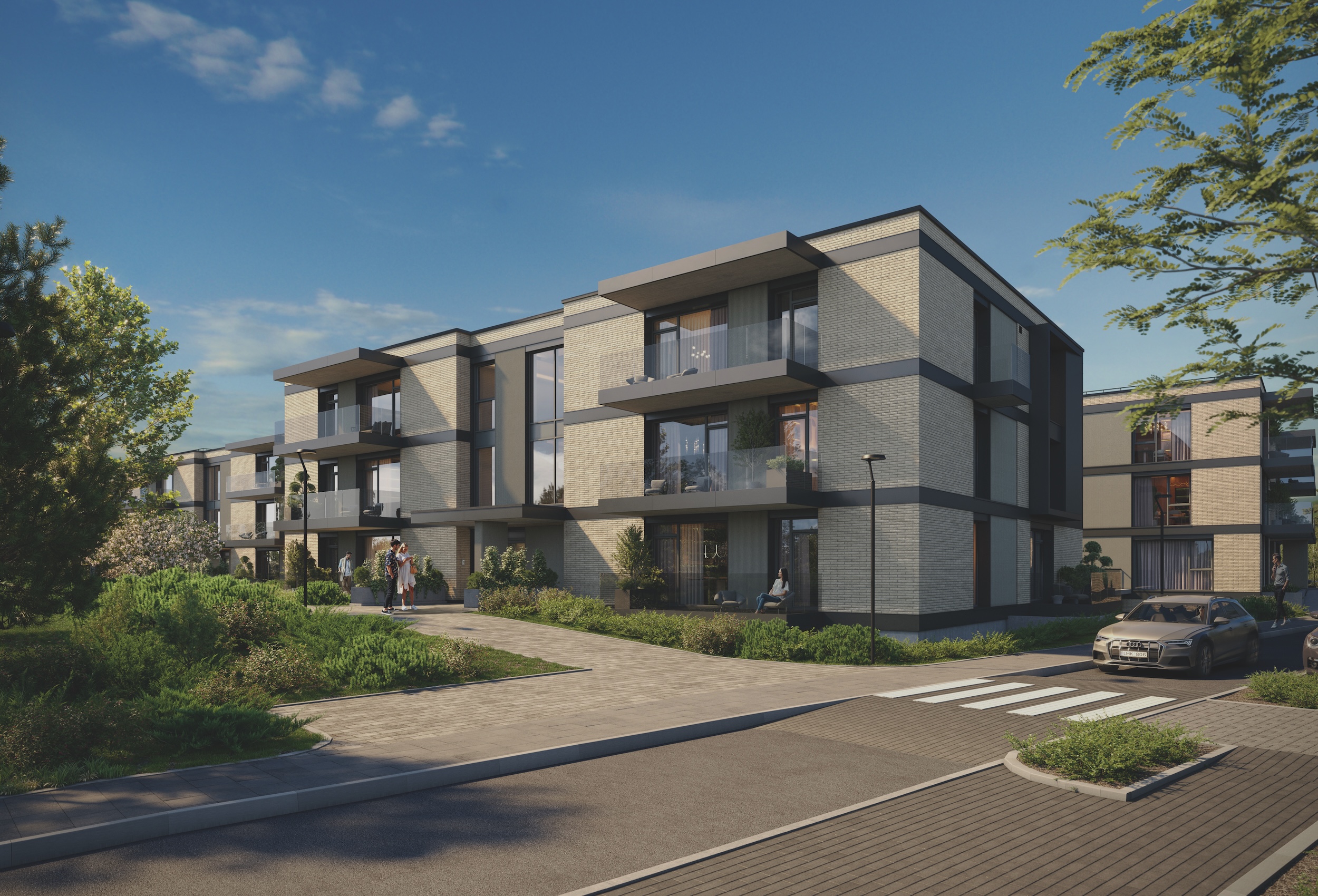 Dideli balkonai, terasos ir pirmojo aukšto butų kiemeliai suteikia galimybę mėgautis privačia lauko erdve, o bendros žaliosios zonos, takeliai ir vaikų žaidimų aikštelės stiprina bendruomenės pojūtį. Kiekvienas kvartalo kampas apgalvotas taip, kad būtų galima ir bendrauti, ir turėti savo erdvę.