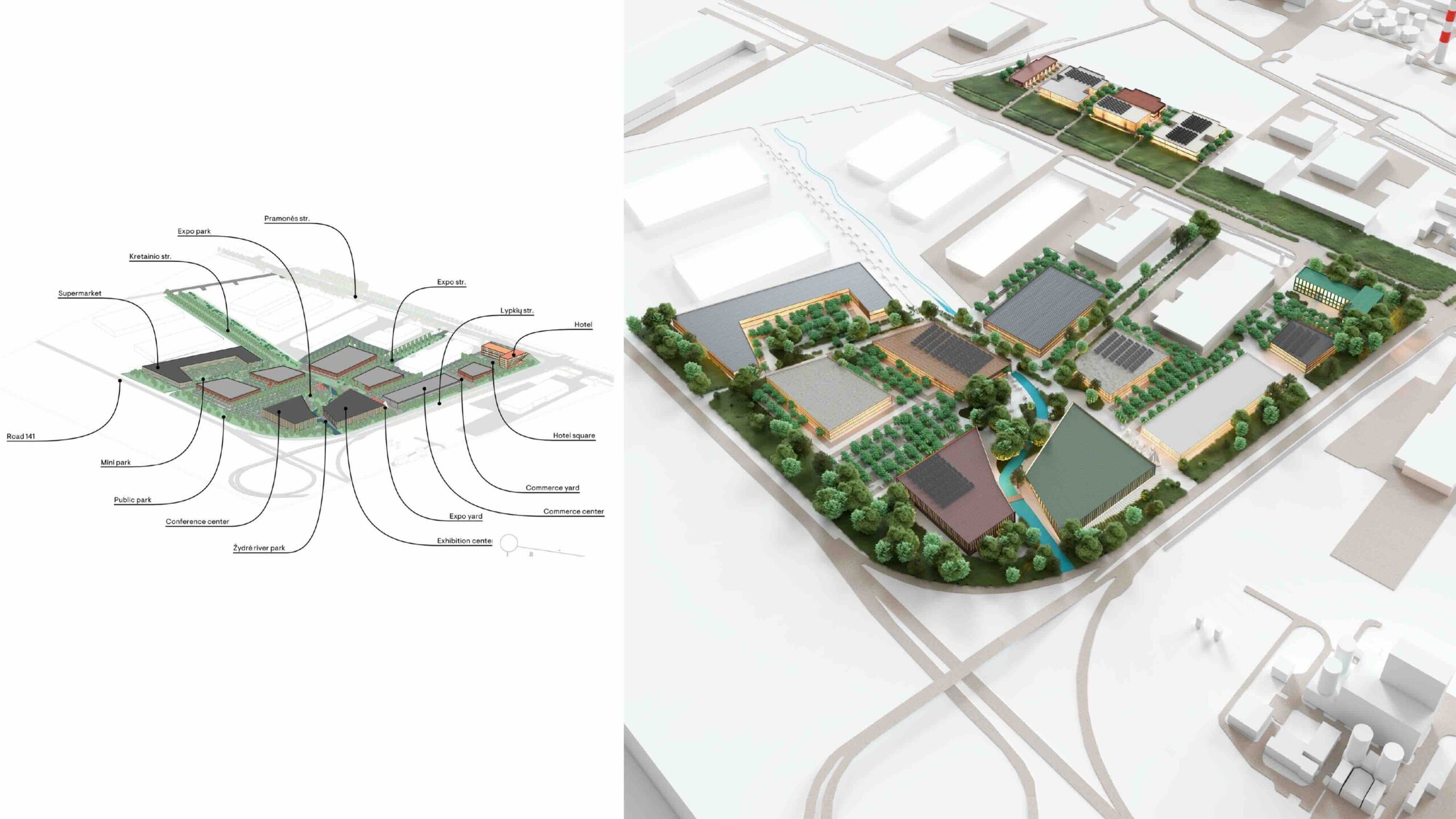 „Didelį dėmesį teritorijoje skyrėme žalumui: ne paviršutiniškam, o sąžiningam, gausiam erdvių apželdinimui, vandens pasitelkimui ar net praplėtimui. Teritorija iš esmės išliks industrine, tačiau aplinka čia gali būti tokia, kurioje norisi būti ir kuria norisi rūpintis. Dėl to kaip idėją pasiūlėme ir pirčių kaimelį – tai kainuoja nedaug, bet gali sukurti didelį efektą. Apskritai, šios teritorijos turėtų labiau priminti universitetinį ar mokslo miestelį, vadinamąjį campus“, – kalba L. Rekevičius.