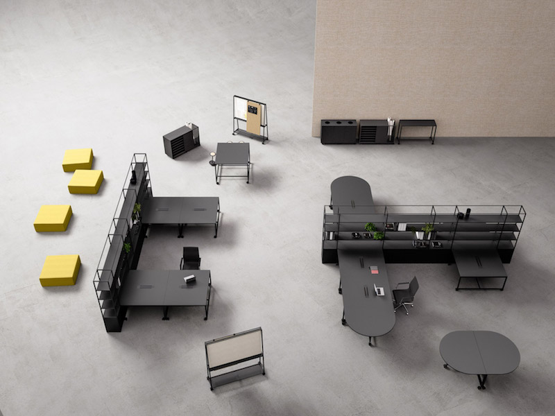 Dviejų fiksuotų aukščių, perkonfigūruojamų darbo paviršių pasirinkimas gali būti naudojamas tiek darbuotojui sėdint ant ergonomiškos kėdės, tiek ir stovint. Juos galima derinti su įvairiais daiktų saugojimo elementais, knygų spintelėmis ir dvipusėmis lentomis, naudojamoms susirinkimams.