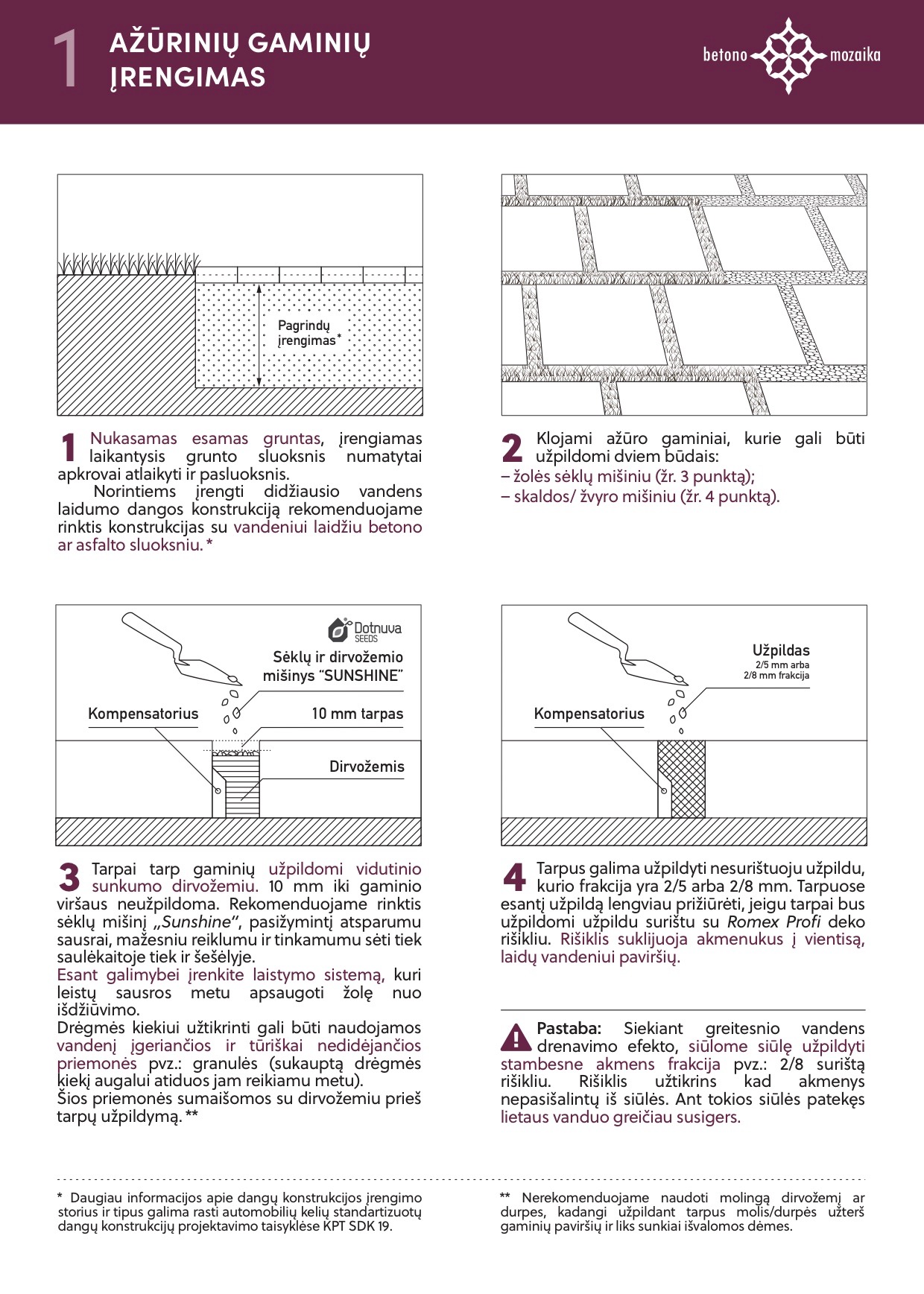 „Kartu su ažūro gaminiais rekomenduojame du įrengimo būdus – naudojant specialiai parinktą sėklų mišinį „Sunshine“, kurio sudėtyje parinkti sausroms atsparūs augalai, arba naudojant skaldelę, rišant su UAB „Betono mozaika“ atstovaujamo Vokietijos gamintojo „Romex GmbH“ produktu“ – sako M. Malinauskas.