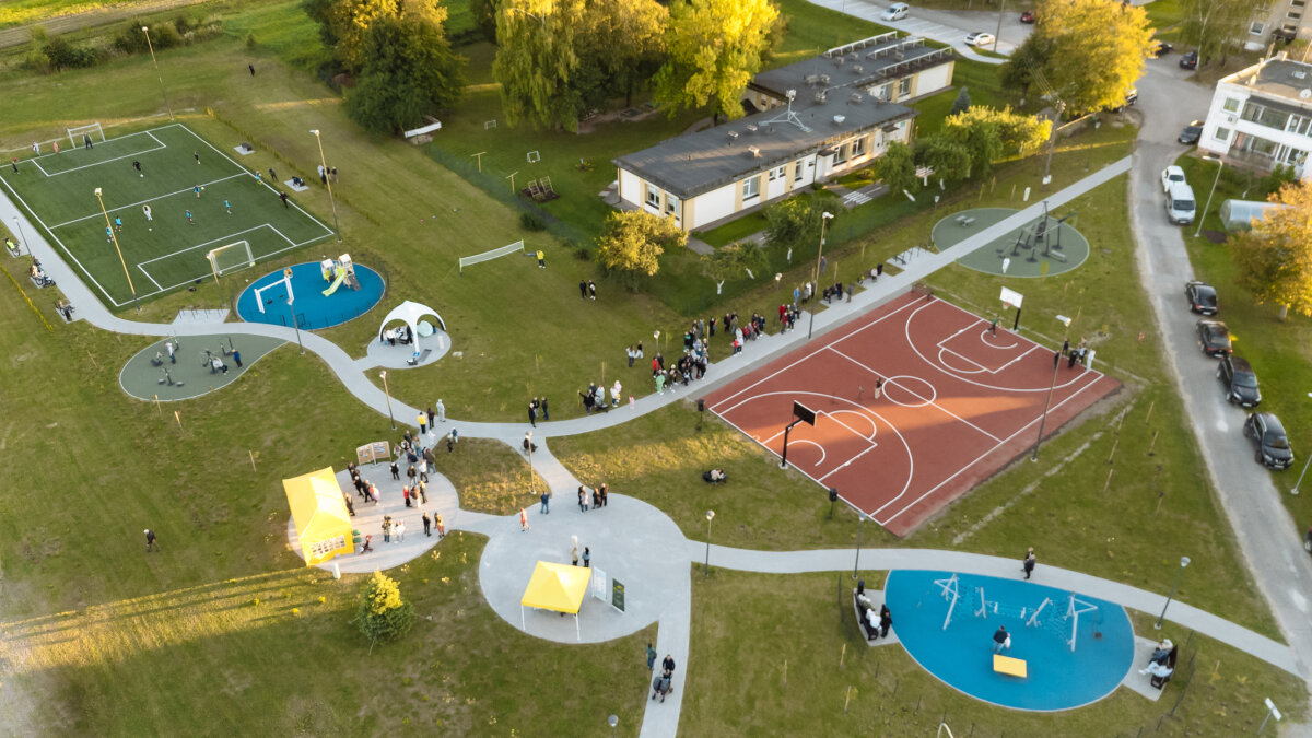 Naujoji erdvė sukurta taip, kad joje veiklos rastų visi – nuo mažiausiųjų iki vyresnio amžiaus gyventojų. Čia įrengtos dvi modernios vaikų žaidimų aikštelės, krepšinio ir futbolo aikštelės sporto mėgėjams, dvi daugiafunkcinės treniruoklių zonos. Taip pat suplanuotos jaukios erdvės poilsiui, bendravimui ir renginiams.
