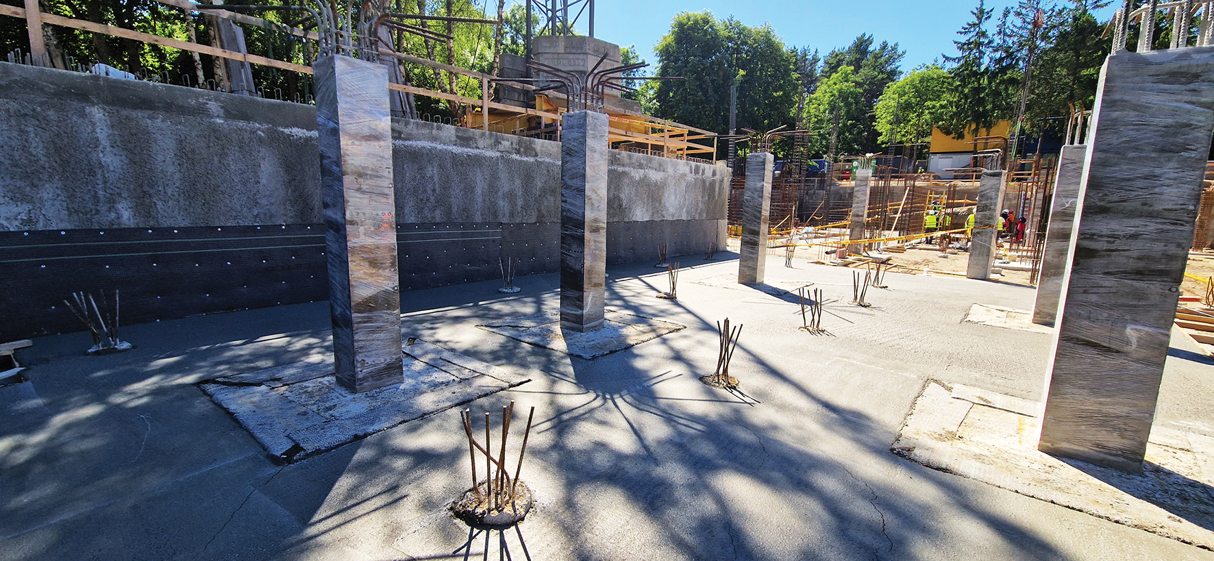 „SENSU kompleksas suprojektuotas taip, kad nereikėtų nuolatinio drenažo, gruntinio vandens lygis būtų kontroliuojamas tinkamais, aukštos kokybės hidroizoliacijos sprendiniais, todėl pasiūlėme iš polių sukonstruotas rūsio sienas apsaugoti bentonitinio molio hidroizoliacija „Voltex®“, padengta 15 cm storio betono sluoksniu. Be to, norint atsverti Archimedo jėgą buvo pasirinktos jėgos grindys, po jomis taip pat įrengta hidroizoliacija „Voltex®“ ir sujungta su sienų hidroizoliacija. SENSU yra labai vandeningoje vietoje, todėl įrengiant rūsio konstrukcijas visą laiką reikėjo gruntinio vandens lygį žeminti adatiniais siurbliais“, – apžvelgia hidroizoliacijos darbus šiame objekte projekto inžinierius Vytautas Tamošaitis, UAB „Mosas“ projektų vadovas.