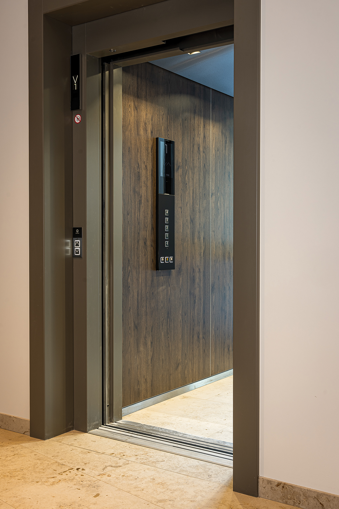 UAB „Schindler-Liftas“ komanda pastate sumontavo modernius „Schindler 3000“ liftus su ilgaamže diržų sistema ir pavara, gaminančia elektros energiją bei užtikrinančia patikimą ir tylų veikimą. Erdviame lifte sumontuotos aukštos kokybės medžio rašto plokštės ir stiklinė galinė siena, vizualiai praplečianti erdvę.